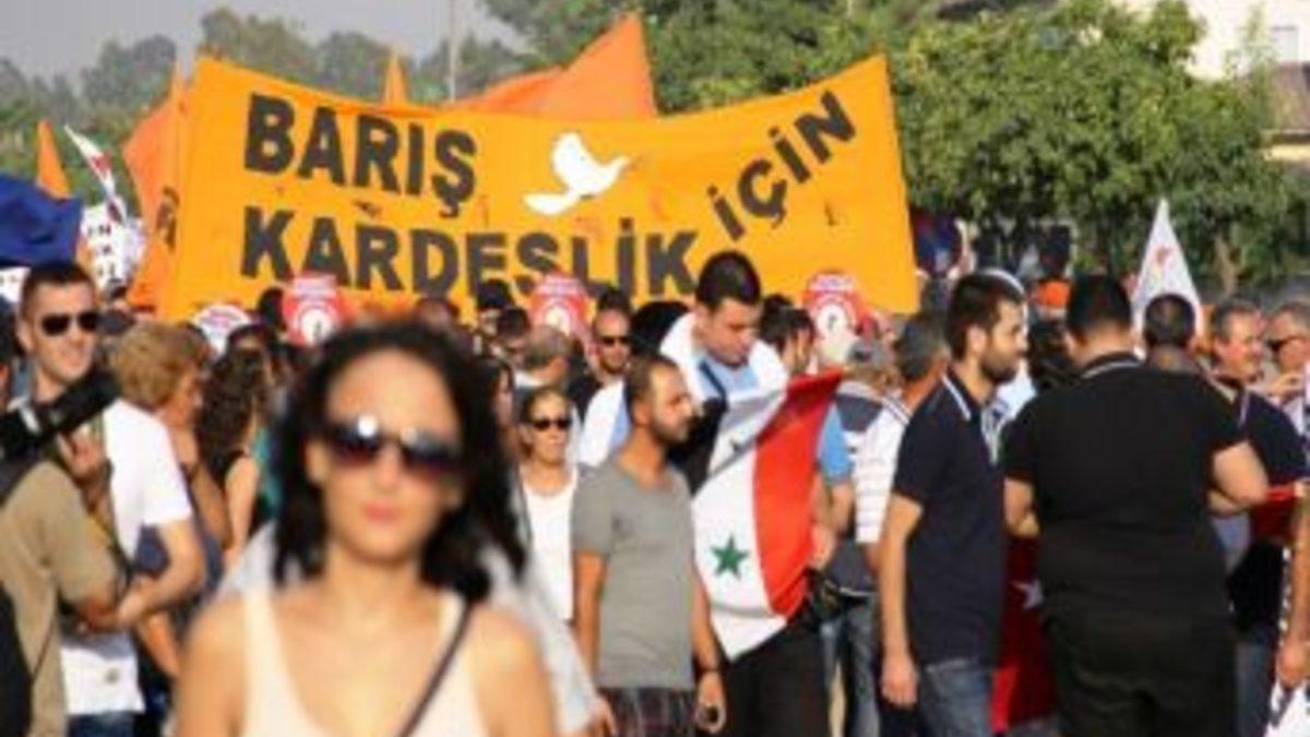 Mimar Sinan Açık Hava tiyatrosu önünde toplanan ve aralarında BDP Grup Başkan Vekili İdris Baluken, Adana Milletvekili Murat Bozlak ile Şanlıurfa Milletvekili İbrahim Binici'nin de bulunduğu kalabalık, sloganlar eşliğinde Uğur Mumcu Meydanı'na kadar yürüdü. Yürüyüşte, Beşşar Esed'a destek veren ve Suriye ile Türk bayrakları taşıyan 2 Suriyelinin de bulunduğu görüldü.