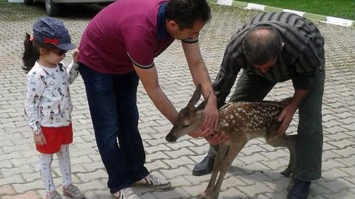 Bursa’nın İnegöl ilçesinde duyarlı vatandaş, ormanlık alanda sürünerek ilerleyen 10 günlük geyik yavrusunun hayatını kurtardı.Özel otomobili ile Kütahya’nın Domaniç ilçesinden İnegöl’e gitmekte olan Coşkun Sağlam, dinlenmek için Tüfekçikonak Mahallesi mevkiinde yol kenarında durdu. Sağlam, bu sırada ormanlık alanda sürünerek ilerleyen yavru geyiği fark etti. Sağlam, ormanlık alana gidip yavru geyiği alarak İnegöl’e getirdi. Duyarlı vatandaş, aracın bagajına koyduğu yavru geyiği İnegöl Orman İşletme Müdürlüğü yetkililere teslim etti. 10 gün önce dünyaya geldiği belirlenen geyiğin uzun zamandan beri aç kaldığını anlayan Orman İşletme Müdürlüğü yetkilileri, biberonla süt vererek geyiği besledi.Arka ayaklarının üzerine basamayan yavru geyik, Bursa Karacabey Yaban Hayatı Kurtarma ve Rehabilitasyon Merkezi’nde bakım yapılması için Bursa Doğa Koruma ve Milli Parklar Bölge Müdürlüğü ekiplerine teslim edildi.