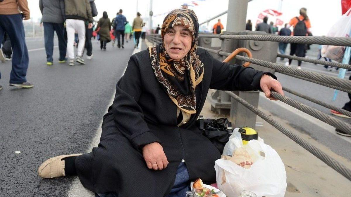 39. Avrasya Maratonunda halk koşusuna katılan vatandaşlar renkli görüntülere sahne oldu. Bazı vatandaşlar köprü üzerine bağdaş kurarak kahvaltı yaptı. Öte yandan, bir sokak köpeği de maratona katılanlara eşlik edince ilginç görüntüler oluştu.39. Avrasya Maratonunda halk koşusunun başlamasıyla birlikte 15 Temmuz Şehitler Köprüsü’nde ilginç görüntüler oluştu. Bazı vatandaşlar kahvaltılıklarıyla köprüye geldi. Köprü ortasında peynir, zeytin, simit yemeye başlayan vatandaşlar ilginç görüntüler oluşturdu. Kahvaltı yapan vatandaşlar boğaz manzarasıyla çay içmenin keyfini yaşadı. Kahvaltı yapan vatandaşlar, "İlk kez katılıyoruz. Bir daha nasip olmaz diye kahvaltı yapıyoruz" dedi.Öte yandan, bazı vatandaşlar da bebek arabasındaki bebekleriyle koşuya katıldı. Kalabalığı gören bir sokak köpeği de vatandaşların peşine takıldı. Bu da ilginç görüntülerin oluşmasına neden oldu. Daha önceki yıllarda köprünün sallanması nedeniyle panik yaşanmıştı. Ancak bu sene köprüde bir sallanma olmadığı görüldü.
