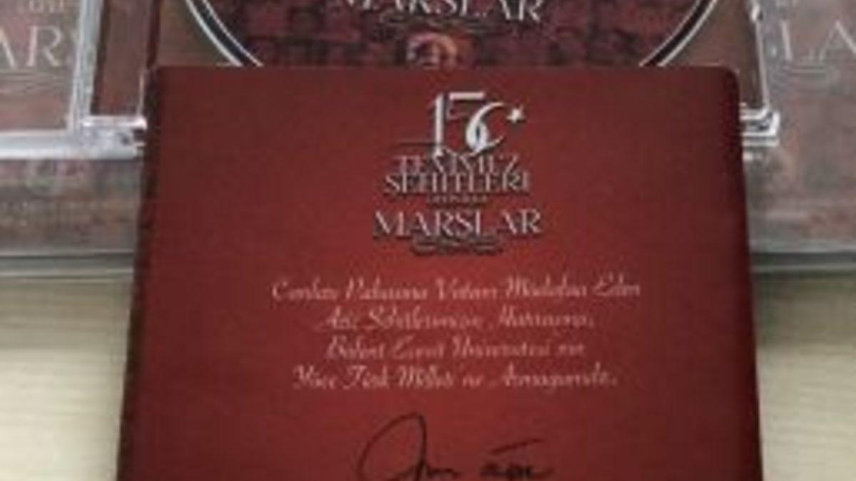 Bülent Ecevit Üniversitesi’nin hazırladığı “15 Temmuz Şehitleri Anısına Marşlar” albümü çıktı.Bülent Ecevit Üniversitesi (BEÜ) 15 Temmuz 2016 günü hain darbe girişiminde yaşananların nesilden nesile aktarılması amacıyla hazırladığı “15 Temmuz Şehitleri Anısına Marşlar” albümü çıktı.Bülent Ecevit Üniversitesi tarafından direktifleriyle hazırlanan albümde hain darbe girişimi gecesinde ve sonrasında yaşananları anlatan 8 adet eser yer aldı. Marşlar filarmoni orkestrası ve BEÜ Devlet Konservatuvarı Korosu tarafından seslendirilerek kayda alındı. Yüce Türk milletinin üstün kahramanlıklarını, bayrak ve vatan sevgisini anlatan, 15 Temmuz akşamı yollara dökülen anaları, babaları çocukları konu alan marşlar 15 Temmuz şehitlerine ithaf edildi. Sanat yönetmenliğini BEÜ Devlet Konservatuvarı Müdürü Yrd.Doç.Dr. İlker Kömürcü’nün yaptığı albüm, ülkemizin toplumsal ve kültürel hafızasına kalıcı eserlerle katkı sunmak amacıyla Tük milletinin beğenisine sunuldu.Devlet Konservatuvarı Müdürü Yrd. Doç. Dr. İlker Kömürcü konuya ilişkin yaptığı açıklamada şunları söyledi: “Sayın Rektörümüz Prof. Dr. Mahmut Özer’in direktifleriyle 15 Temmuz Marşlarının yer aldığı bir müzik CDsi hazırlamak amacıyla Devlet Konservatuvarı öğretim elemanlarından bir çalışma grubu kurduk. Uzun süren bir çalışmadan sonra albümümüzü çıkardık. Çok mutlu ve gururluyuz. Sayın Rektörümüze destek ve teşvikleri için çok teşekkür ediyoruz.” dedi.Rektör Prof. Dr. Mahmut Özer hazırlanan albümü milletimize sunmaktan gurur duyduklarını belirterek şunları söyledi:“15 Temmuz 2016 gecesi ülkemiz tarihinin en ağır ve en hain saldırılarından birine maruz kaldı. Ağır silahlarla ve tanklarla kendi halkını, Cumhurbaşkanlığı Külliyesi’ni, Türkiye Büyük Millet Meclisi’ni, Sayın Cumhurbaşkanımızın kaldığı oteli bombalayan hainler Türk milletine hafızalardan silinmeyecek son yüz yılın en karanlık ve kanlı gecesini yaşatmaya çalıştılar. 15 Temmuz gecesi yaşanan bu kanlı girişimde Türk milletinin çektiği acıları, karşı karşıya kaldığı ihaneti ve üstün kahramanlıklarını anlatacak metinlerin oluşturulması ve bu metinlerin Türk milletinin duygularını ifade edebilecek müzik dokusuyla bütünleştirilerek marşların bestelenmesine karar verdik. Devlet Konservatuvarım "15 Temmuz Marşları”nı besteleme görevini gururla yerine getirmek için çalışmalara başladı ve bugün itibariyle albümün baskısı tamamlanarak elimize ulaştı. Kendimize milli bir görev olarak addettiğimiz ve gururla hazırladığımız 15 Temmuz Marşları Albümünü; canları pahasına vatanı müdafaa eden aziz şehitlerimizin hatırasına yüce Türk Milletine armağan etmekten gurur duyuyoruz. Çalışmada emeği geçen Devlet Konservatuvarı Müdürümüz Sayın Yrd. Doç. Dr. İlker Kömürcü’nün şahsında projede yer alan çalışma grubu üyelerine teşekkür ediyorum.”