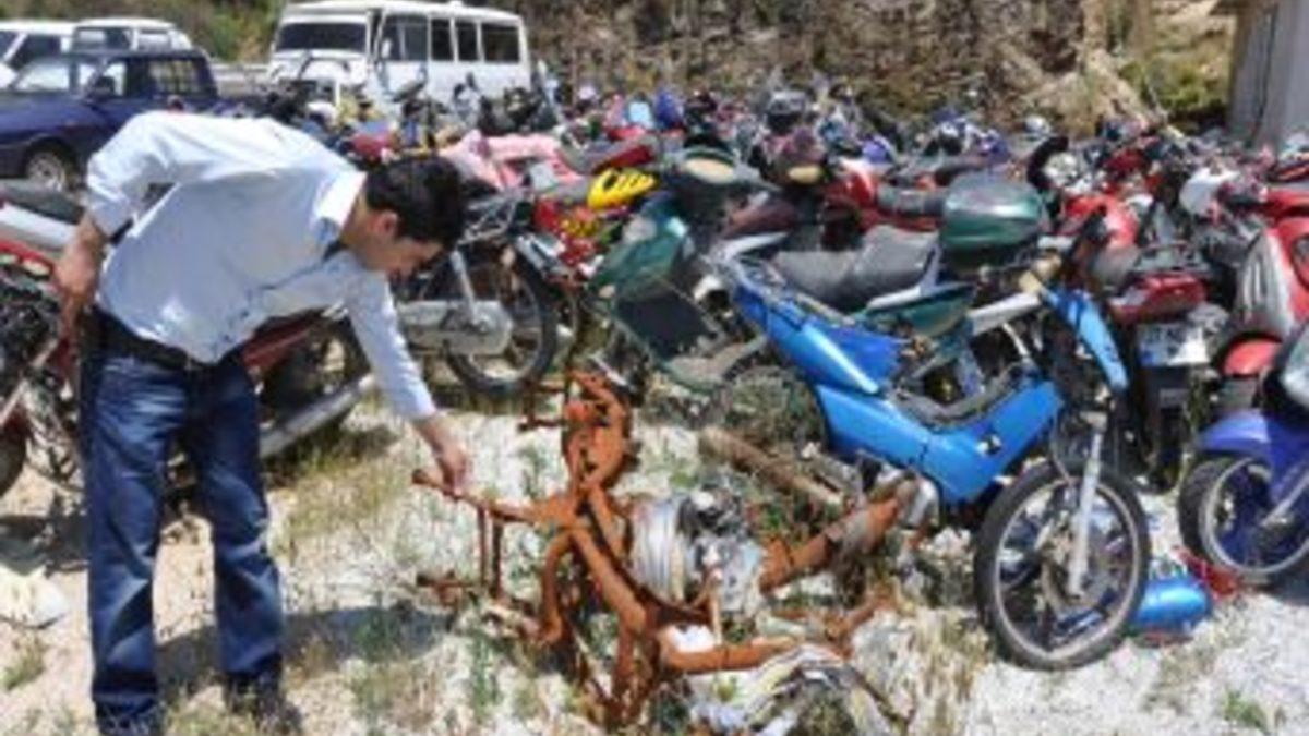 Antalya’nın Alanya ilçesinde, çeşitli trafik cezalarından dolayı bir otoparkta bekletilen ve sahipleri almaya gelmeyen motosiklet ve araçlar 17 dönüm araziyi doldurdu. Sahipleri tarafından alınmayı bekleyen ve adeta bir motosiklet mezarını andıran arazide araçların birçoğu çürümeye başladı.