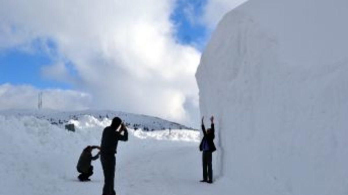 Ordu’nun Çambaşı Yaylası’nda 20 metre yüksekliğinde kar kürtükleri görenleri şaşırtıyor.