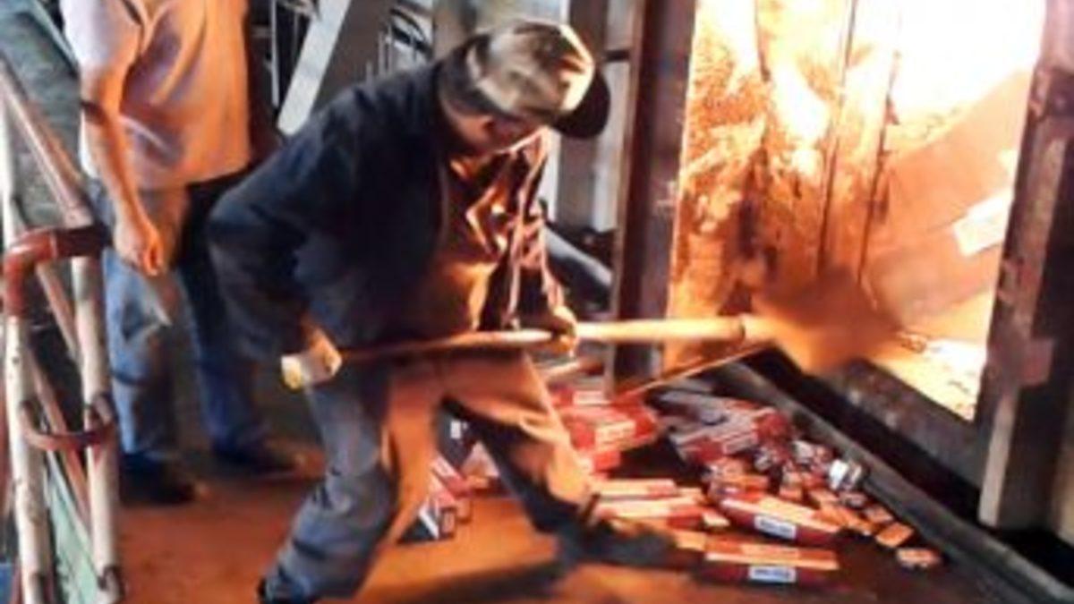 Polisin ele geçirdiği kaçak sigaralar, Elbistan Şeker Fabrikası'nda kutularla ateşe atıldı ve imha edildi.Kahramanmaraş'ın Elbistan Emniyet Müdürlüğü Kaçakçılık ve Organize Suçlarla Mücadele (KOM) Grup Amirliği tarafından 1 Eylül 2012 ile 1 Haziran 2013 tarihleri arasında sigara kaçakçılığı ile mücadele kapsamında yapılan çalışmalarda 62 operasyon gerçekleştirildi. Bu operasyonlarda çeşitli markalarda 285 bin 849 paket sigara ele geçirildi, 84 şüpheli şahıs hakkında yasal işlem yapıldı. Ele geçirilen kaçak sigaraların imhası için resmi yazışmalar yapıldı ve talimatlar çerçevesinde 200 bin paket gümrük kaçağı sigara Elbistan Şeker Fabrikası kömür ocağına götürüldü. Burada yetkili mercilerin kontrolü ile 200 bin paket kaçak sigara kutularla ateşe atıldı ve imha edildi.Yıllarca terörün en önemli finans kaynaklarından biri olan kaçak sigara ile ilgili ciddi adımlar atıldığını belirten yetkililer, yapılan operasyonlarda Türkiye genelinde yüz binlerce liralık sigara ele geçirildiğini belirtti. Yetkililer, vatandaşların kaçak sigara ile ilgili dikkatli olmaları ve alım-satım işine girmemeleri uyarısında bulundu.
