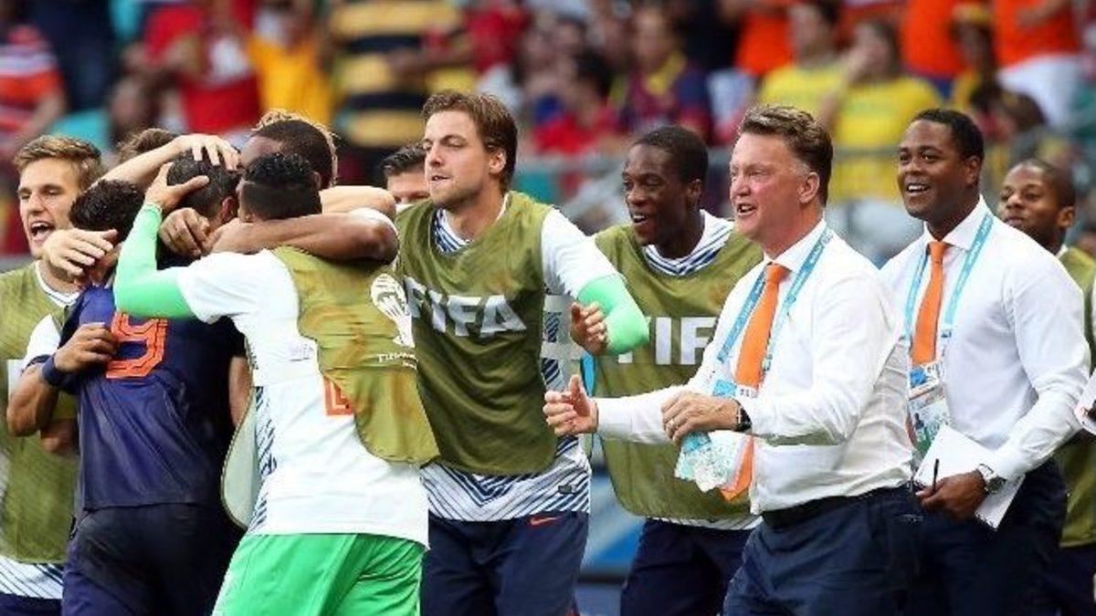 2014 Dünya Kupası karşılaşmasında İspanya ile Hollanda karşı karşıya geldi. Mücadele Hollanda'nın 5-1'lik üstünlüğü ile sona erdi.İLK YARIFonte Nova Arena’da oynanan karşılaşmanın ilk golü 26. dakikada penaltıdan geldi. Ceza sahası içinde Vrij'in müdahalesi sonrası Diego Costa’nın yerde kalması sonucu hakem Nicola Rizzoli penaltı noktasını gösterdi. Penaltı atışı için topun başına geçen Xabi Alonso meşin yuvarlağı ağlarla buluşturdu ve İspanya 1-0 öne geçti. Hollanda beraberliği 44. dakikada yakaladı. Sol kanattan Blind'in ceza sahasına doğru yaptığı uzun ortada Robin van Persie’nin uçarak yaptığı kafa vuruşunda top ağlara gitti. İlk yarı 1-1 berabere tamamlandı.İKİNCİ YARIİkinci yarıda Hollanda, İspanya karşısında adeta coştu. Arjen Robben 53. dakikada şık bir golle takımını 2-1 öne geçirdi. 60. dakikada ceza sahası içinde sağ çaprazda topla buluşan Robin van Persie'nin şutu direkte patlarken, 65. dakikada Sneijder'in serbest vuruşunda kale dibinde De Vrij'in topa dokunuşuyla Hollanda, İspanya karşısında 3-1'lik üstünlük sağladı. 72. dakikada Casillas'ın hatasını iyi değerlendiren Robin van Persie farkı üçe çıkardı. (4-1) 80. dakikada gecenin yıldız isimlerinden Robben şık bir vuruşla skoru belirledi. (5-1)Karşılaşmada Galatasaraylı oyuncu Wesley Sneijder 90 dakika boyunca forma giyerken, Fenerbahçeli oyuncu Dirk Kuyt ise yedek kulübesindeydi.