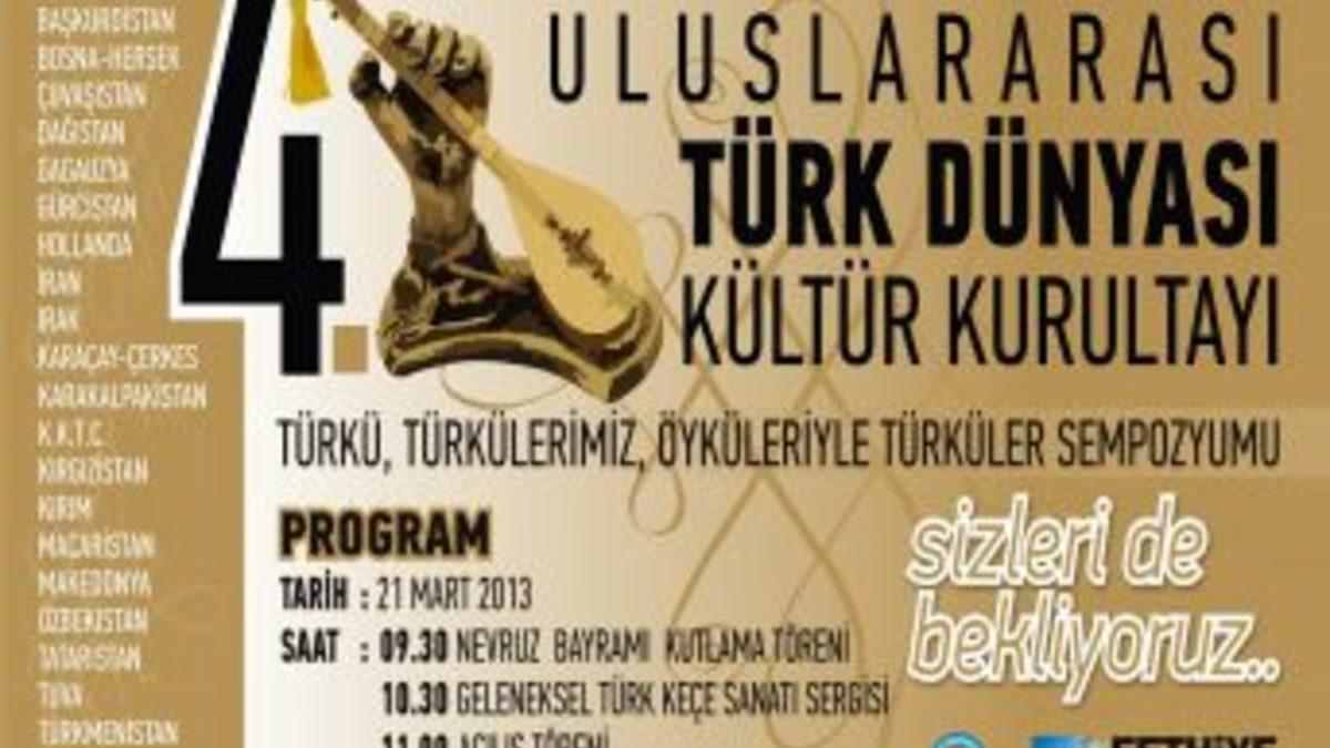 Fethiye Belediyesi ve Halk Kültürü Araştırmaları Kurumu (HAKAK) tarafından bu yıl dördüncüsü düzenlenen Uluslararası Türk Kültürü Kurultayı 21 Mart'ta başlıyor. 23 ülkeden 115 akademisyenin katılacağı kurultayın bu yılki teması 'Türkü, Türkülerimiz, Öyküleriyle Türküler' olarak belirlendi.