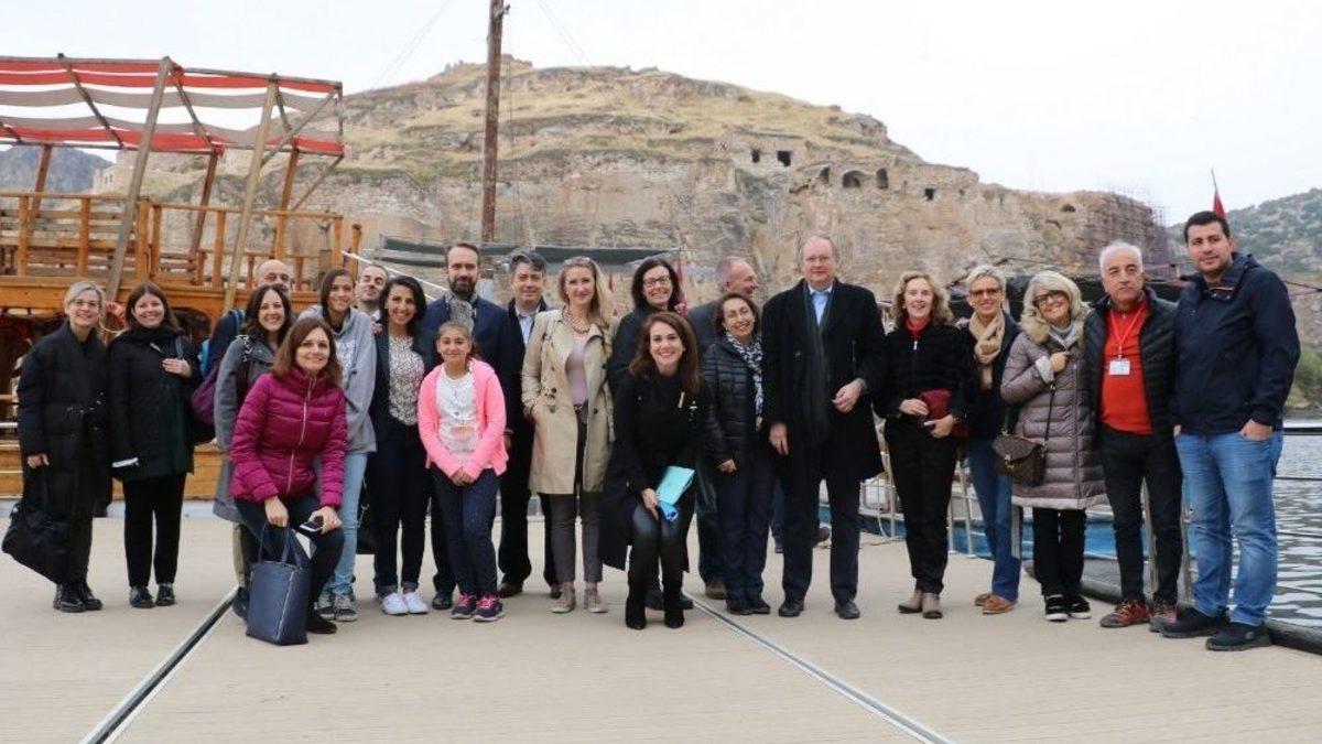 Avrupa Birliği Türkiye Delegasyonu Başkanı Büyükelçi Christian Berger ve beraberindeki 24 AB üyesi ülkenin büyükelçileri Rumkale-Halfeti tekne turuna katıldı.Bazı temaslarda bulunmak üzere Gaziantep’e gelen 24 AB üyesi ülkenin büyükelçisi ve Avrupa Birliği Türkiye Delegasyonu Başkanı Büyükelçi Christian Berger, Yavuzeli ilçesinde tekne turuna katılarak Fırat Nehri üzerinde Rumkale ve Halfeti’yi gezdi.Gezi sonrası basın mensuplarına bir açıklama yapan Büyükelçi Berger, "Türkiye’de şimdiye kadar keşfettiğimizden daha fazlasını keşfetmemiz için mükemmel bir fırsat oldu. Bir kaç gündür Gaziantep’teyiz. Bugün de Fırat’ta bir tekne turu yaptık. Rumkale’yi gördük ne kadar güzel ve çeşitlilik gösteren bir ülke olduğunu fark ettik ve çok beğendik" ifadelerini kullandı.