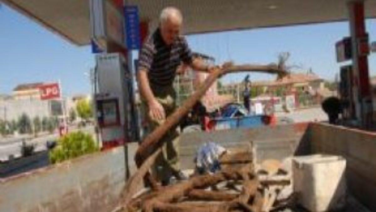 Kırıkkale'nin Bahşılı ilçesinde bir çiftçinin bahçesinde 25 metre uzunluğunda ağaç kökü bulundu.
