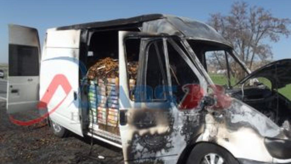 Malatya’dan yüklemiş olduğu 2,5 Ton Paketlenmiş kuru kayısı ile Muş’a gitmekte olan İrfan Akagündüz yönetimindeki 27 SR 115 plakalı minibüs Kovancılar ilçesinin girişinde seyir halinde iken alev aldı.