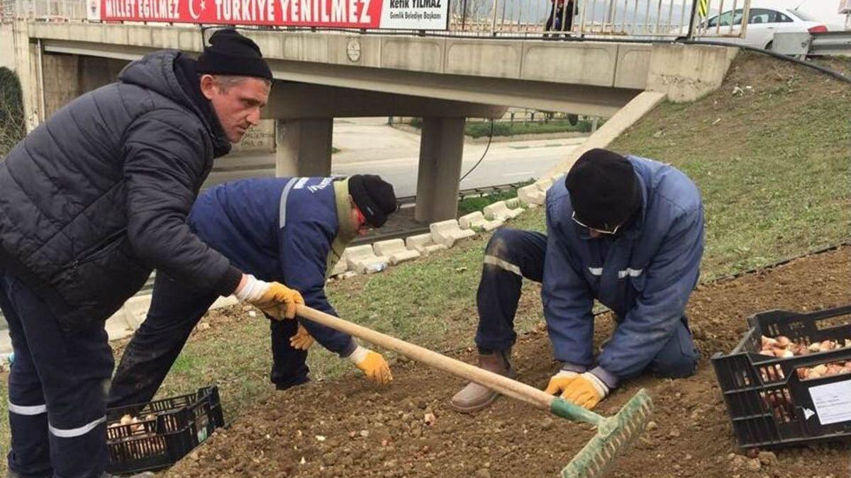 Bursa’nın Gemlik ilçesinde 25 bin lale soğanı toprakla buluşuyor.Gemlik Belediyesi tarafından ilçenin giriş ve çıkışları başta olmak şehrin muhtelif bölgelerinde mevsimlik çiçek ve lale soğanı ekimi devam ediyor. Park ve Bahçeler Müdürlüğü ekipleri, terminal kavşağının yanı sıra orta refüjlerde de yoğun bir çalışma yaparak, mevsimlik çiçek ve lale soğanı ekimi yapılabilmesi için hummalı bir çalışma yürütüyor.Belediye Başkanı Refik Yılmaz, lalelerin ve mevsimlik çiçeklerin ilçeye ayrı bir güzellik katacağını belirterek, “Belediye olarak ilçemizin belirli yerlerine mevsimlik çiçekler dikiyoruz. Ekiplerimiz 26 bin bin adet lale soğanının dikimine başladı. Gemlik, mart ve nisan aylarında çiçek açmaya başlayacak. İlçemiz daha güzel bir görünüme sahip olacak” dedi.