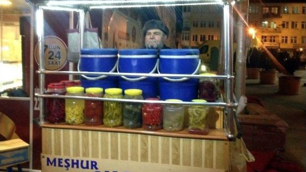 Kütahya’da Nurettin Orman isimli vatandaş, tam 30 yıldır turşu suyu satarak geçimini sağlıyor.Ürünün kendisi tarafından imal edildiğini belirten Orman, havuç, salatalık, lahana ve biberden oluşan turşu sularının yıllardır beneğiyle tüketildiğini kaydetti.Turşu suyu ürününü her akşam Atatürk Bulvarı üzerindeki seyyar tezgahında bardağını 1,5 TL’den satışa sunduğunu ifade eden Orman, "Ben tam 30 yıldır turşu siyi satarak geçimimi sağlıyorum. Bu işten kazandığımla 4 çocuğunu da üniversite okuttum ve meslek sahibi yaptım. Bizim işimiz akşam gün batımı başlar gün doğumu sona erer.Şimdiye kadan hiç işyeri açmayı düyünmedim" diye konuştu.Nurettin Orman, Kütahya’nın seyyar turcu satışının sadece kendini tarafından yapıldığını sözlerine ekledi. (EFE)