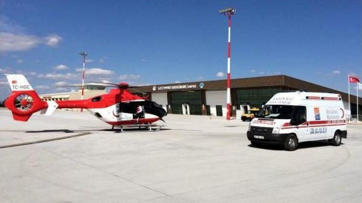 Gürkan YILMAZ/ KASTAMONU, Özel Anadolu Hastanesi'ne rutin kontrol için gelen Emine Sarı, 32 haftalık bebeğinin kalp atışlarının zayıfladığı görülmesi üzerine erken doğuma alındı. Sezaryen ile gerçekleştirilen doğumda dünyaya gelen bebeğin, daha ileri tedavi için İstanbul'daki Özel Güngören Hastanesi'ne sevk edilmesi kararlaştırıldı. Sağlık Bakanlığı ile yapılan görüşme sonunda sağlanan ambulans helikopter, Kastamonu Havalimanı'na indi. Ambulanstan helikoptere nakledilen bebek İstanbul'a sevk edildi.