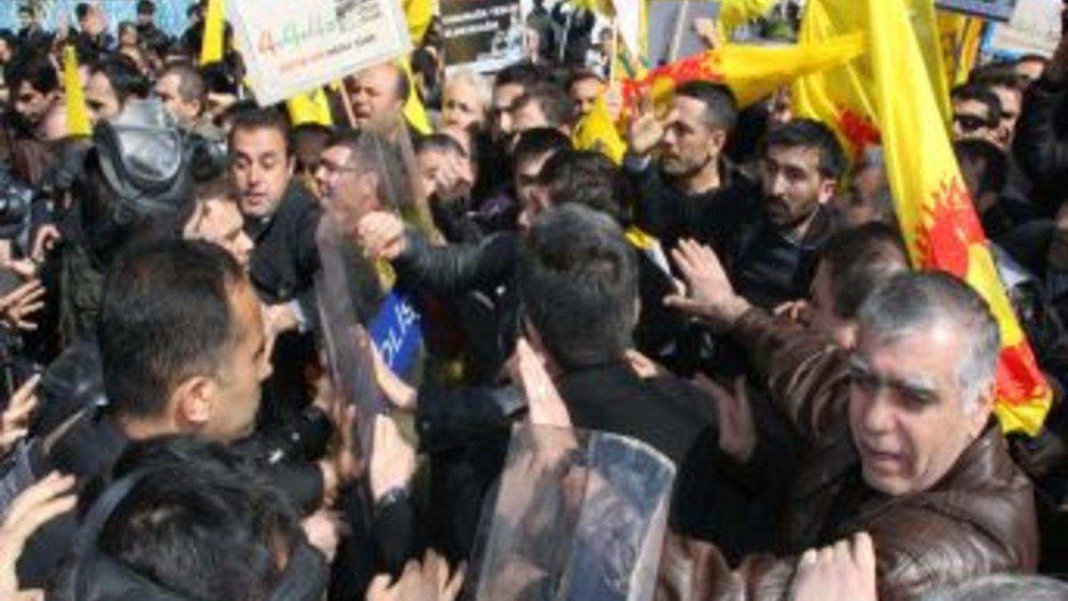 Göstericilerden ulus meydanına geçip basın açıklamalarını yapmalarını polisin bu isteğini geri çeviren KESK’e bağlı sendikaların üyeleri bunu reddedince, bir arbedede burada yaşandı.
