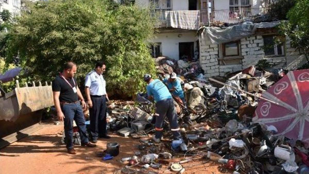 - ALANYA Belediyesi Zabıta Müdürlüğü ve Temizlik İşleri Müdürlüğü ekipleri, Tosmur Mahallesi'nde görüntü ve çevre kirliliğine yol açan hurda malzemeleri ve çöp evleri boşalttı. 5 evden 38 kamyonluk çöp çıktı.