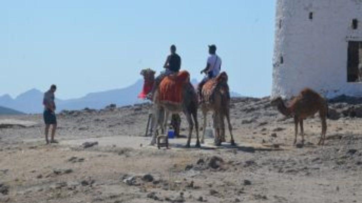 Develeri para kazanmak uğruna her gün Bodrum'a kamyonun arkasında getiren sahipleri, turistlere 5 Türk lirası karşılığında deveyle fotoğraflarını çekiyor. Deve ve yavrusunu sürekli yere oturtup ayağa kaldıran şahıs, para kazanmak uğruna hayvanlara işkence ediyor.