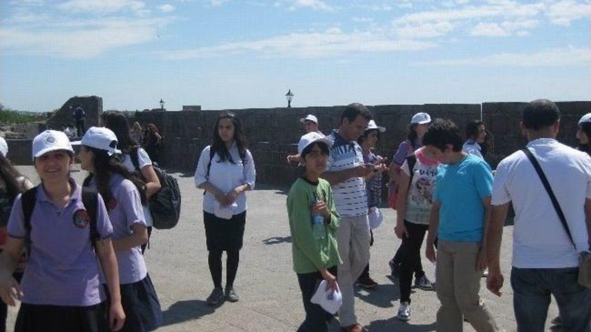Diyarbakır Büyükşehir Belediyesi’nin 5 yıldan bu yana sürdürdüğü ve öğrencilerin tarih ve kültür bilincini geliştirmeye yönelik kent gezilerinin 10’uncusu gerçekleştirildi. 12 okuldan 550 öğrenci bu eğitim öğretim sezonunda kentin tarihi ve turistik yerleri gezdirildi.Kültür ve Turizm Daire Başkanlığı ile İmar ve Şehircilik Daire Başkanlığı’na bağlı KUDEB Şube Müdürlüğü’nün birlikte organize ettiği geleneksel kent gezileri sona erdi. Tarihi ve kültürel mirası koruma bilincinin oluşturulması amacıyla düzenlenen gezilere İMKB Hattat Hamit Aytaç Oratokulu öğrencileriyle devam edildi. Okul yönetimi tarafından tespit edilen öğrencilerden oluşan 35 kişi tarihi yerleri gezme fırsatı buldu. Sabah saatlerinde Büyükşehir Belediyesi’ne ait araçlarla okuldan alınan öğrencilere öğretmenleri eşlik etti. Ongözlü Köprü'den başlatılan gezide buradaki tarihi yapıların özellikleri turizm bürosu çalışanlarından Antropolog Melike Dara Günal, Turizmci Şirin Gencer, Profesyonel Turist Rehberi Metin Özçelik, Sanat Tarihçi Kadri Avcı tarafından anlatıldı. Ardından Keçi Burcu, Dört Ayaklı Minare, Surp Giragos Kilisesi, Hasanpaşa Hanı, Cahit Sıtkı Tarancı Müzesi, Ulucamii, Cemil Paşa Konağı'nı gezen öğrenciler Dengbej Evi’nde dengbejlerin stranlarını dinledi.5 yıldan bu yana yürütülen kent gezilerinde bu sezon 10 okulun öğrencileri yararlandı. 85. Yıl Milli Egemenlik Anadolu Lisesi, Tevfik Pehlivanoğlu Ortaokulu, Otelcilik ve Turizm Meslek Lisesi, Fatih Ortaokulu, Toplu Konut Lisesi, Fevzi Çakmak Ortaokulu, Yunus Emre Anadolu İmam Hatip Lisesi, Gazi Ortaokulu, Vali Gökhan Aydıner Teknik ve Endüstri Meslek Lisesi, İMKB Hattat Hamit Aytaç Ortaokulu’ndan 450 öğrenci kentin tarihi ve turistik yerlerini rehberler eşliğinde gezdi.Büyükşehir Belediyesi ayrıca Dicle Üniversitesi Mimarlık Fakültesi öğrencileri ile Turizm Haftası dolayısıyla Turizm ve Otelcilik Meslek Lisesi öğrencilerine aynı programı uyguladı.