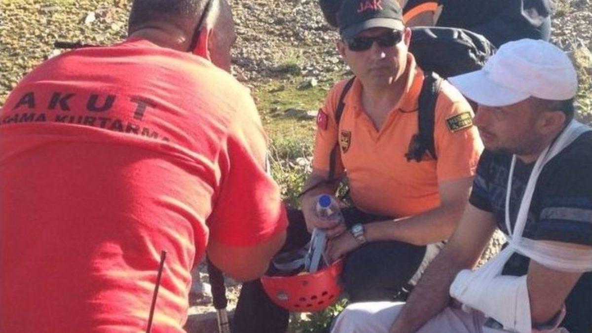 Kayseri’deki Erciyes Dağı’na yapılan tırmanış sonrasında inişe geçen 26 kişilik dağcı grubunda bulunan bir kişi düşerek kolunu kırdı. Yaralı, AKUT, JAK, ve UMKE ekiplerinin 7 saatlik çalışması sonucunda kurtarıldı.Edinilen bilgiye göre, Taner K.’nın da aralarında bulunduğu 26 kişilik dağcı grubunun Erciyes Dağı’na çıktığı öğrenildi. Grubun yapılan tırmanışı tamamladıktan sonra inişe geçtiği Hörgüçkaya mevkiinde ise, Taner K.’nın düşerek sol korulunu kırdığı bildirildi. Ekip arkadaşlarının haber vermesi üzerine AKUT, JAK ve UMKE ekiplerinin kurtarma çalışmaları için harekete geçti.Yapılan 7 saatlik kurtarma çalışmaları sırasında yaralıya ulaşan ekipler ilk müdahaleyi dağda yaptı. Kolu kırılan Taner K., dağdan, hava ambulansının rahat inebileceği bir yere getirildi. Hava ambulansına teslim edilen Taner K., Erciyes Üniversitesi Tıp Fakültesi Hastanesi’ne kaldırıldı.