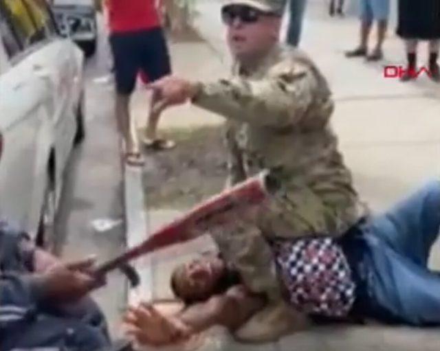Olay, ABD'nin New York kentinde meydana geldi. Bir ABD askeri, 'aracına tükürdüğü ve ABD ordusu ile ilgili aşağılayıcı ifadeler kullandığı' iddiasıyla siyahi kişiyi önce yumrukladı, daha sonra da yere savurdu. Gözü dönmüş askerin diziyle yerde yatan siyahi kişinin boğazına bastırdığı görüldü. ABD askeri, polis gelince yerde yatan kişinin üzerinden kalktı. Askerin siyahi adamı yumrukladığı ve üzerine çıkarak diziyle bastırdığı anlar saniye saniye kaydedildi.