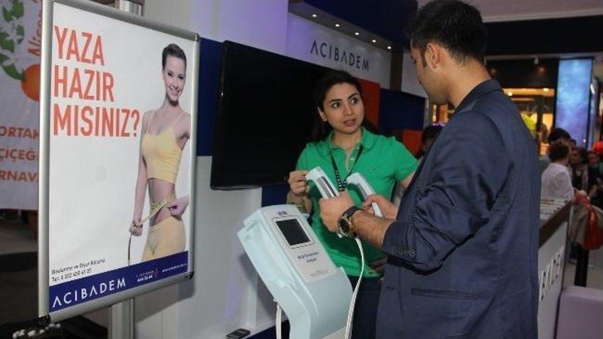 Acıbadem Adana Hastanesi Portakal Çiçeği Boyunca ücretsiz Beden Kitle İndeksi ve Kan Şekeri ölçümü hizmeti veriyor.Acıbadem Adana Hastanesi, Portakal Çiçeği Karnavalı coşkusunun en yoğun yaşandığı Şinasi Efendi Caddesi'ne, “sağlık” standı kurdu. Stantta Acıbadem Hastanesi hakkında bilgi ve broşürler dağıtılırken stantta yer alan Beden Kitle İndeksi Ölçüm Cihazı yoğun ilgi gördü. Son teknolojiyle donatılmış cihaz, dakikalar içerisinde ölçüm yapabiliyor. Bunun yanı sıra stantta sabahları açlık kan şekeri ölçümü hizmeti ve diyabeti önlemeye yardımcı bilgi ve broşürler de veriliyor.