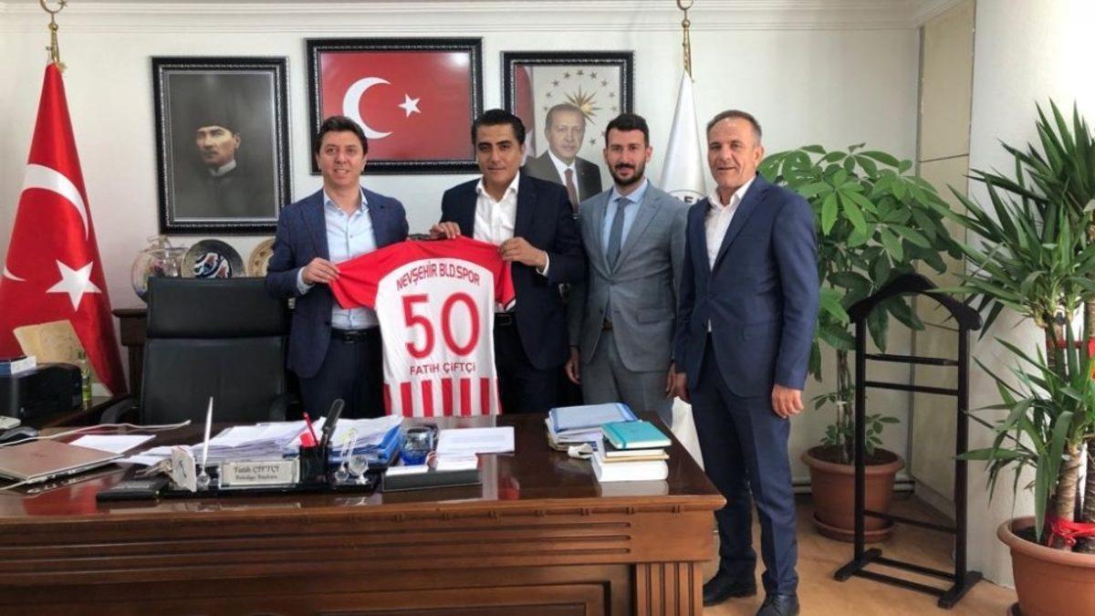 TFF. 3. Lig’deki temsilcimiz Nevşehir Belediyespor’a destek sağlayan Acıgöl Belediye Başkanı Ercan Ertaş ve Gülşehir Belediye Başkanı Fatih Çiftçi’yi ziyaret eden kırmızı-beyazlı ekibin yöneticileri, belediye başkanlarına kulübün formasını hediye etti.