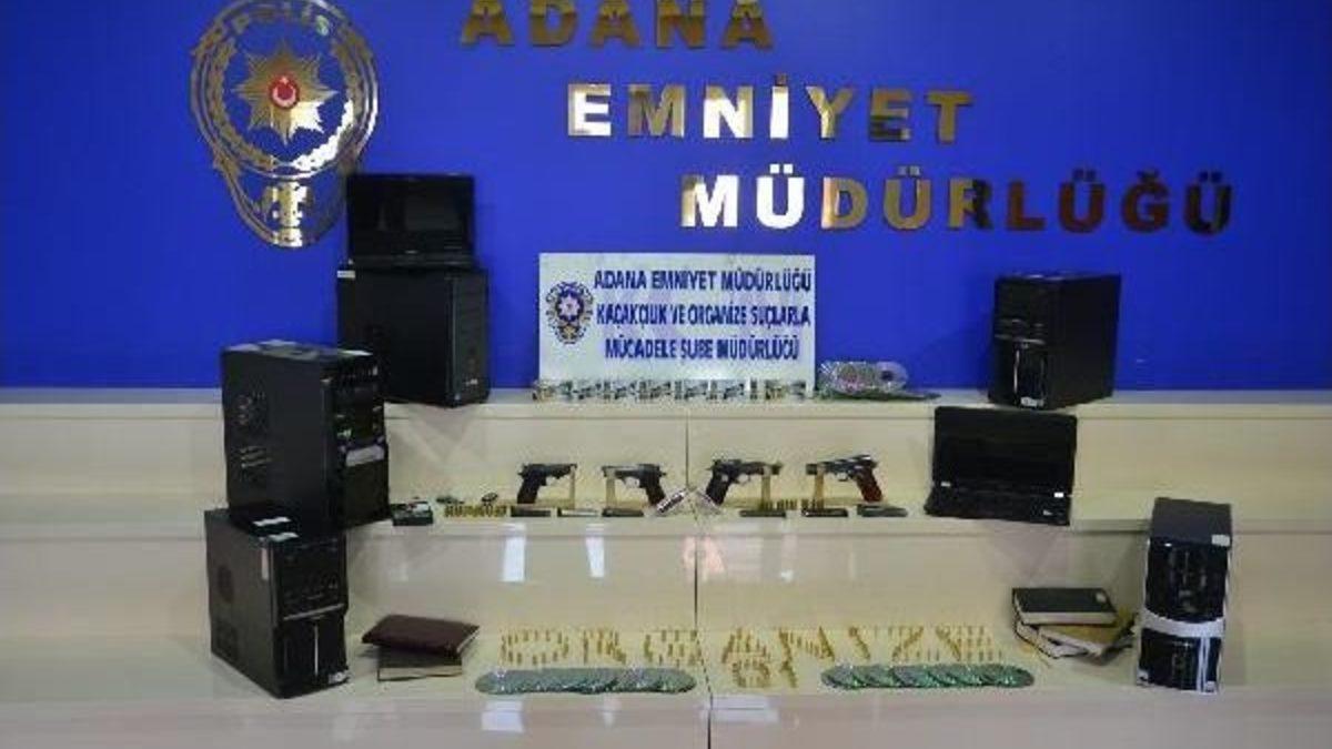 ADANA, Adana Emniyet Müdürlüğü Kaçakçılık ve Organize Suçlarla Mücadele Şube Müdürlüğü'ne bağlı ekipler liderliğini H.D.'nin yaptığı suç örgütüne operasyon yaptı. 24 adrese düzenlenen eş zamanlı baskınlarda 14 kişi gözaltına alındı. Şüphelilerin ev, iş yerlerinin yanı sıra göstermiş oldukları yerlerde yapılan aramalarda 4 tabanca, 206 tabanca fişeği, 5 av tüfeği fişeği, 8 flash bellek, 7 bilgisayar, 1 harddisk, 28 bin TL tutarında 2 çek, 43 bin 500 TL tutarında 5 senet, 5 alacak verecek defteri, başkasının adına düzenlenmiş iki kimlik ve kimlik fotokopisi, 107 CD ile bir adet bıçak ele geçirildi. Şüphelilerin emniyetteki sorguları sürerken, konuyla ilgili çalışmaların devam ettiği bildirildi.