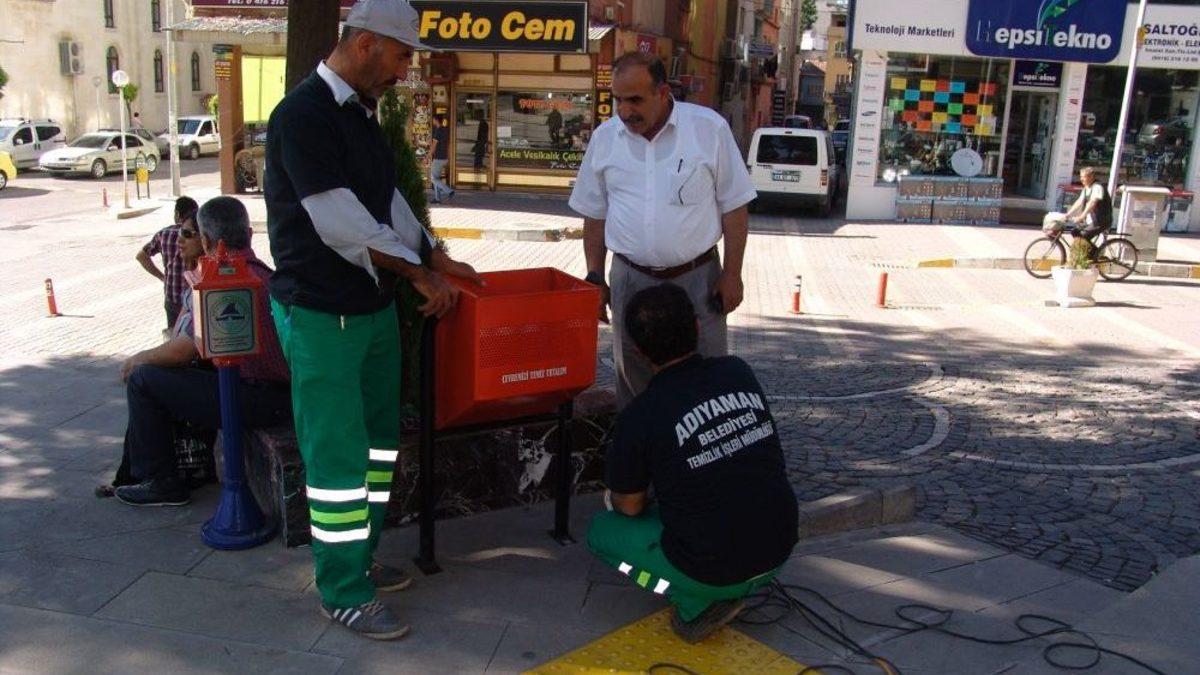 Adıyaman Belediyesi, daha çok yaşanabilir bir kent oluşturmak amacıyla ana arterlerdeki eskiyen kaldırım tipi çöp kovalarını yenileriyle değiştiriyor.