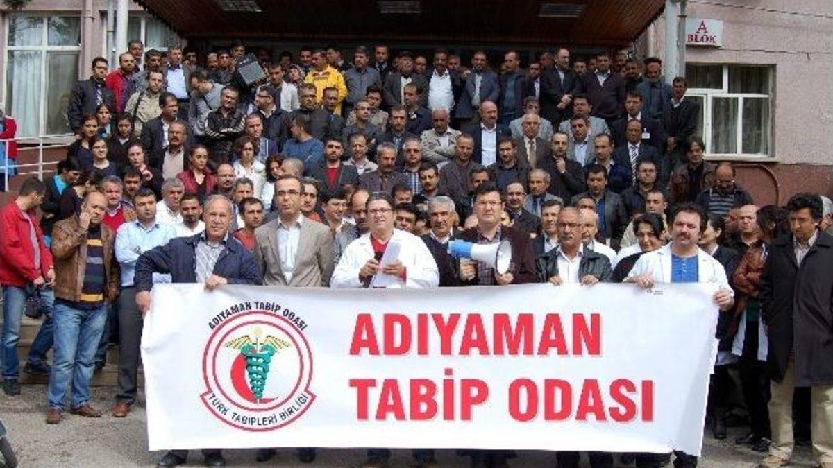 Adıyaman Tabip Odası’nın düzenlediği, çeşitli sendika ve sivil toplum kuruluşlarının da destek verdiği eylem Eğitim ve Araştırma Hastanesi bahçesinde gerçekleşti. Gaziantep’te bir hasta yakını tarafından bıçaklanarak öldürülen Dr. Ersin Arslan’ın ölümünün birinci yıl dönümünde yapılan iş bırakma eyleminde, geçtiğimiz günlerde Adıyaman Eğitim ve Araştırma Hastanesi acil bölümündeki hastanın saldırısına uğrayan Dr. Gazi Narcı’nın ölümden döndüğü ifade edildi.