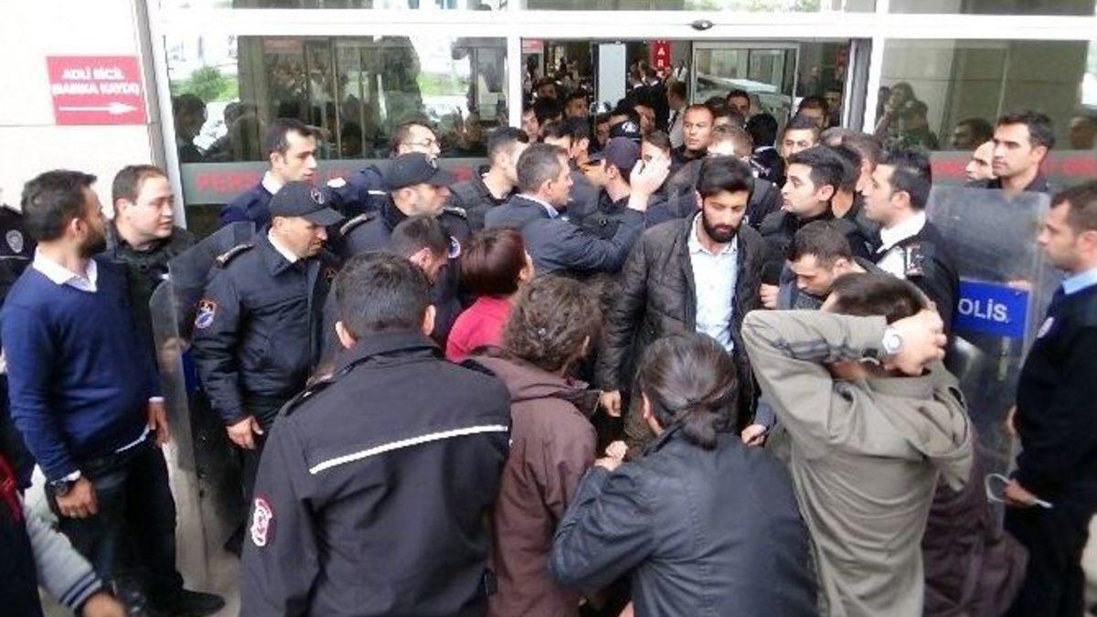 Çağlayan’daki İstanbul Adalet Sarayı’nda bazı avukatlar, çantalarını x-ray cihazlarına bırakmak istemeyince, adliye karıştı. Çevik Kuvvet ekiplerinin kalkanlarla müdahalesi sonrası arbede yaşanırken, polislere tepki gösteren avukatlar, evrak çantalarını adliyenin kapısına fırlattı.Hafta sonu yapılacak olan İstanbul Barosu Başkanlığı seçimleri öncesi, İstanbul Adalet Sarayı karıştı. Başkanlığa aday olan gruplardan Özgürlükçü Çağdaş Avukatlar’ın da aralarında bulunduğu bazı avukatlar, adliye girişinde çantalarını x-ray cihazlarına bırakmak istemeyerek, önce özel güvenlik görevlileriyle tartıştı.Güvenlik görevlileri avukatlara, Başsavcılık talimatı üzerine avukatların çantalarını x-ray cihazına bırakma zorunluluğu olduğunu söylerken, avukatlar bunun kanunlara aykırı olduğunu belirtti. Sözlü tartışmanın ilerlemesi üzerine devreye polis ekipleri girdi. Yapılan uyarılar sonuç vermeyince Çevik Kuvvet Ekipleri, avukatları kalkanlarla adliyenin dışına süpürdü. Bu sırada arbede yaşandı. Yaka paça dışarı çıkarılan kadın avukatlardan bazıları yere düşerken, bir çevik kuvvet polisi de dengesini kaybederek düştü.Polislere tepki gösteren avukatlar, evrak çantalarını adliyenin içine atarak, ‘Çantaları istiyordunuz, alın o zaman’ diye bağırdı. “Baroyu istemiyoruz” şeklinde slogan atan avukatlarla bir süre konuşmaya çalışan İstanbul Barosu Yönetim Kurulu üyesi avukat Hasan Kılıç’ın çabaları da sonuçsuz kaldı. Bir süre daha devam eden sözlü tartışmanın sona ermesinin ardından avukatlar adliyeye giriş yaptı.Avukatların adliyeye girmesinin ardından, kapılara atılan evrak çantaları ise dikkat çekti.Savcı Kiraz’ın şehit edilmesinden sonra talimat verilmiştiÇağlayan’daki İstanbul Adalet Sarayı’nda 31 Mart tarihinde savcı Mehmet Selim Kiraz’ı şehit eden teröristlerin sahte avukat kimliğiyle adliyeye girmesinin tespiti üzerine, adliyede güvenlik önlemleri arttırılmıştı. Avukatların kartlarını cihazlara okutup çantalarını x-raycihazından geçirerek adliyeye girmeleri zorunluluğu getirilmesi, güvenlik güçleriyle avukatlar arasında günlerce süren tartışmalara neden olmuştu.