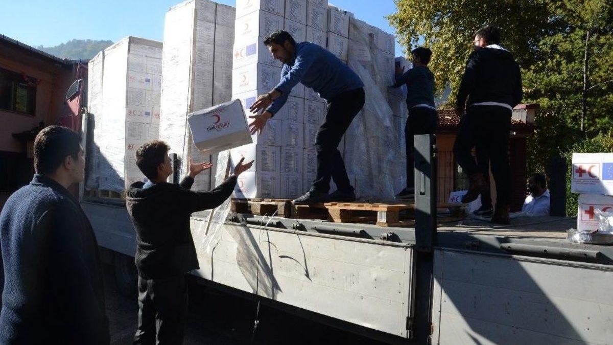 Zonguldak’ta sokakta kalan Afganlı ve Uygur Türklü vatandaşlara Ensar gurubu ve Kızılay’dan 2 tır yardım malzemesi geldi.Zonguldak’ta yaklaşık 2 ay önce göç müdürlüğüne gelemeye başlayan yaklaşık bin 800 mülteci 320 ev ve okullara yerleştirilerek barınma ihtiyaçları karşılanıyor. Ev ve okullarda kalan mültecileri için Ensar Grubu ve Türk Kızılay’ı tarafından ailelere yardım yapılmak üzere 2 tır yatak, battaniye, nevresim malzemesi geldi.Sabah saatlerinde gelen malzeme yüklü tırlar okullara boşaltılarak mülteci ailelere yardım yapılmak üzere dağıtılacak. Zonguldak’ta bin 800’e yakın mülteci aile olduğunu ve tüm mültecilerin okul ve evlere yerleştirildiğini ifade eden Kızılay Derneği Zonguldak Şubesi Başkanı Nihat Aygün, yardım çalışmalarının 54 gündür devam ettiğini söyledi. Eksiklerin yüzde 80 oranında tamamlandığını ifade eden Aygün, “Bildiğiniz gibi Afganlı ve Uygur Türklü kardeşlerimiz 54 gün önce Zonguldak’ta bulunan göç müdürlüğümüzün önüne her gece otobüslerle gelmeye başladılar. İlk zamanlar göçmen kardeşlerimiz göç müdürlüğü önünde kartonların üstünde yatıyorlardı. Kızılay olarak İlk iki gün müdahale ettik ve ilk etapta sabah kahvaltılarını ve akşam yemeklerini battaniye ve yastık gibi ihtiyaçlarını karşıladık. Zonguldak Valisi Ahmet Çınar’ın talimatlarıyla yaklaşık 54 gündür bu insanlarımızı sokakta yatırmamak üzere ilk etapta 2 okula yerleştirdik. Okullardaki sınıfları oda haline getirdik. Daha sonra gelen aileleri evler tutarak evlere yerleştirdik. Şuanda okullarımızda 20 aile var onları bir eve yerleştireceğiz. Bu 320 evin eksikleri var. Bu eksiklerin şuanda yüzde 80’ni tamamlamış durumdayız. Bu işler devam ederken Zonguldak’ta Basın İlan Müdürü Ali Nuhoğlu başkanlığında bir Ensarlar gurubu kuruldu. Ben bu gruba teşekkür ediyorum. Bu kuruluşun içinde birçok kuruluş var. Bu kuruluşla beraber bütün eksikleri tamamladık. Burada bize valimizin verdiği destek çok önemli teşekkür ediyoruz. Sokakta şuan hiçbir insanımız yok. Kızılay genel başkanımız eksik olan 500 battaniye, 500 yastık, 500 takım hijyenik koli 500 takım nevresim, 500 yatak gibi malzemeler bu tırlarla geldi. Gelen malzemelerle eksiklerimizi tamamlayacağız. Buradan bütün Zonguldaklı hayırseverlere teşekkür ediyorum” şeklinde konuştu.