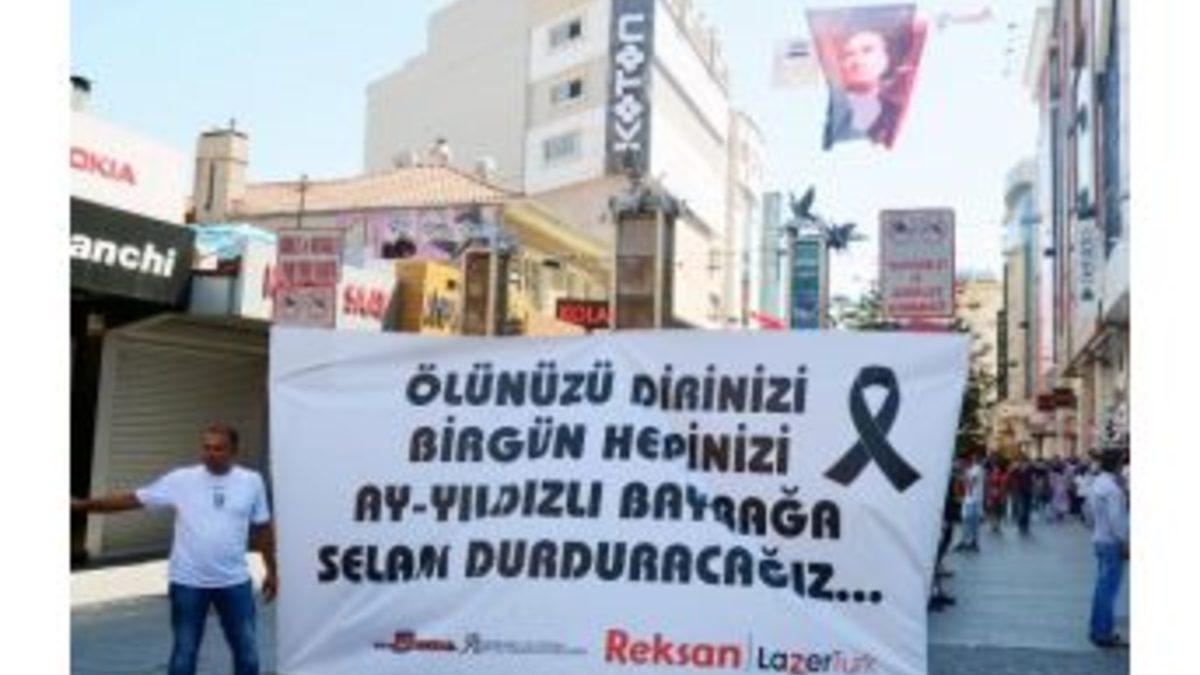 Mustafa KOZAK/ANTALYA, Kazım Özalp Caddesi'nin Muratpaşa Camii güneyindeki girişine, üzerinde 'Ölünüzü dirinizi bir gün hepinizi ay yıldızlı bayrağa selam durduracağız' yazılı afiş asıldı. Geçen hafta sonu, afişin bulunduğu caddenin üzerine Yörükler Derneği öncülüğünde bir grup tarafından marşlar eşliğinde dev Türk bayrağı ile Atatürk posteri asıldı. Ancak afiş, şikayet üzerine polis tarafından kaldırıldı. HDP Antalya İl Başkanlığı ise afişle ilgili savcılığa suç duyurusunda bulundu. Suç duyurusunda, afişin nefret ve ayrımcılık içerdiği gerekçesiyle bunu asanlar hakkında yasal işlem yapılması istendi.