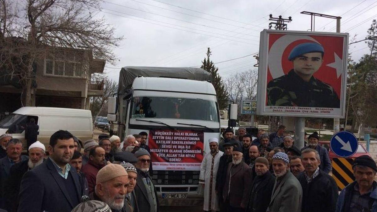 Antalya’nın Korkuteli ilçesine bağlı Küçükköy Mahallesinden, Afrin’de yürütülen Zeytin Dalı Harekâtında görevli askerler için bir kamyon Elma ve Armut gönderildi.Korkuteli’ne bağlı Küçükköy Mahallesinde Türk Silahlı Kuvvetlerinin Afrin’de yürüttüğü Zeytin Dalı Harekâtında görevli Mehmetçik için hazırlanan Elma ve Armut’tan oluşan 1 kamyon meyve eşliğinde gönderildi.AK Parti Korkuteli ilçe Başkanı İlhami Yıldıran, “AK Parti İlçe teşkilatı olarak karşılanan, Küçükköy Mahallesi Hayır Yapma ve Yaşatma Derneğinin destekleriyle meyve Kamyonu Korkuteli’ne bağlı Küçükköy Mahallesinden dualarla gönderdik. Kahraman ordumuz daha düne kadar kendi topraklarımızda ne yapıyorsa şimdi de sınır dışında ülkemizin başına bela olmaya çalışan terör belasının kökünü kurutmak adına Afrin’de çarpışıyor. Biz bu belanın kökünün kuruyacağına eminiz. Mehmetçiklerimize Korkuteli’nden meyve gönderiyoruz. Allah, ordumuza ve kahraman askerlerimize kısa zamanda zaferler nasip eylesin” dedi.Okunan dua sonrası meyve yüklü kamyon yola çıktı.