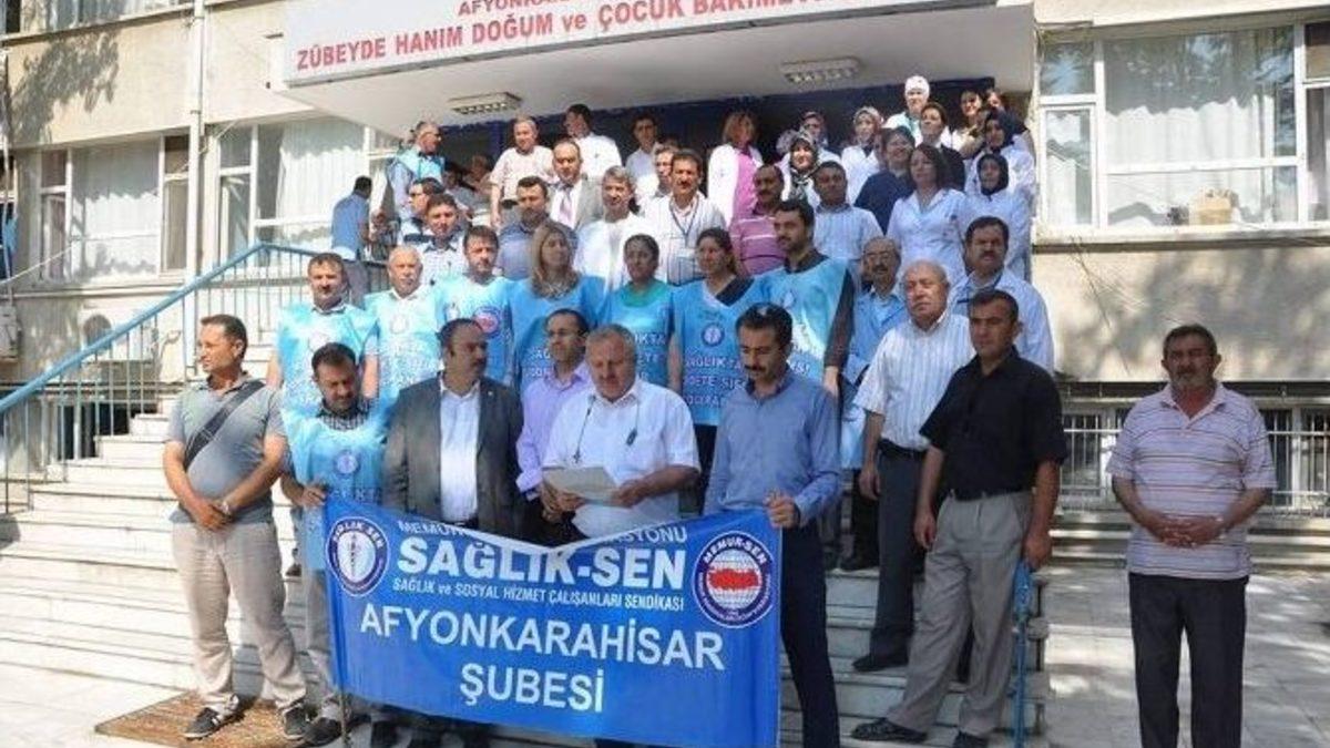 Sağlık-Sen Afyonkarahisar Şubesi üyeleri, Zübeyde Hanım Doğum ve Çocuk Hastalıkları Hastanesi Müdür Yardımcısının darp edildiğini öne sürerek, olayı hastane binası önünde yaptıkları basın açıklaması ile protesto ettiler.Çok sayıda sağlık çalışanının katıldığı basın açıklamasında, eylemciler adına basın açıklamasını Şube Başkanı Abdülkadir Hız okudu. Saldırının dün hastane içerisinde gerçekleştirildiğini ve hastanede görevli Müdür Yardımcısı M.B.’nin hastanede çalışan bir yüklenici firma personelinin 3 yakını tarafından henüz netleşemeyen bir nedenden ötürü odasında darp edildiğini öne sürerek, “Gecesini gündüzünü insanların hayatını kurtarmaya adayan sağlık çalışanlarımıza yönelik bir saldırı da dün ilimiz Zübeyde Hanım Doğum ve Çocuk Hastalıkları Hastanesi’nde yaşanmıştır ve Hastane Müdür Yardımcımız darp edilmiştir. Gece gündüz özverili bir şekilde insanların sağlıklarına kavuşmalarına adayan Sağlık çalışanlarımız, hizmet ettikleri kurumların hizmet kalitesini artırma yönünde yaptıkları çalışmaların karşılığını şiddet ve darp olarak almaktadırlar. Çalışanlarımıza layık görülen bu muamele asla kabul edilemez. Ülkemizde son yıllarda giderek artan sağlık çalışanlarına yönelik şiddet olayı maalesef ilimizde de yaşanmaktadır. Tüm uyarılara rağmen, hatta çok yakın zamanlarda bir çok meslektaşımızın şiddet nedeniyle hayatını kaybetmesine rağmen şiddetin önüne geçilmiyor, geçilemiyor. Hekime ve sağlık çalışanına yönelik şiddet tehlikeli boyutlardadır. Ölümle ve sakatlıkla sonuçlanan saldırılar olmuştur, ne yazık ki bundan sonra da olması çok muhtemeldir. Hastane Müdür Yardımcımıza karşı yapılan, bu kabul edilemez olayı Sağlık-Sen camiası olarak nefretle kınıyor. Ne olursa olsun her şeyin hukukun içinde olmasını arzu ediyoruz. Hiçbir kimsenin kaba kuvvetle bir yere varamayacağını bilmesi gerektiğini söylüyoruz ve bu menfur saldırıyı yapanın en kısa zamanda cezalandırılmasını ve yasalarımız önünde hesap vermesini bekliyoruz.”SALDIRI NEDENİ AÇIKLANMADIAçıklamanın ardından gurup üyeleri dağılırken, saldırıyı uğradığı iddia edilen M.B.’nin niçin saldırıya uğradığı ile ilgili sendika yetkilileri ve eyleme katılanların bir bilgi vermemesi ise dikkatlerden kaçmadı.