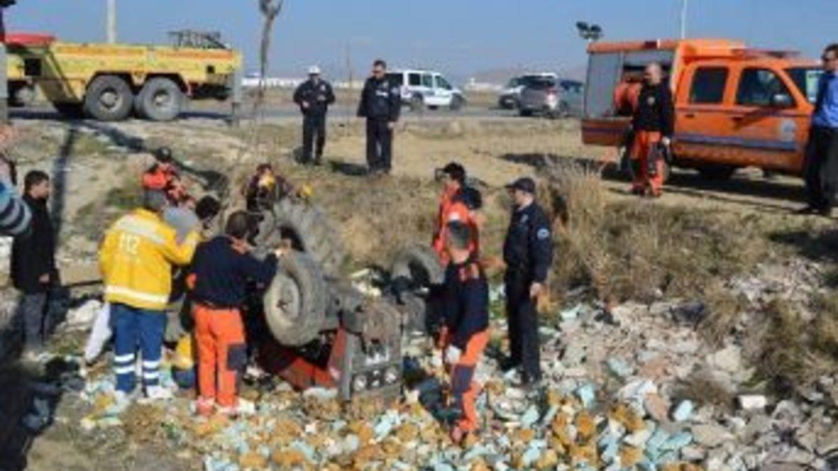 Afyonkarahisar’da meydana gelen trafik kazasında, kullandığı traktörün devrilmesi sonucu aracın altından kalan bir kişi, yaklaşık yarım saatlik uğraşları sonucu sıkıştığı yerden kurtarabildi.Edinilen bilgilere göre kaza, bugün öğlen saatlerinde Afyonkarahisar Organize Sanayi Bölgesi yolunda meydana geldi. Dikkatsizlikten kaynaklanmış olabileceği düşünülen kazada, OSB yolu üzerinde bulunan tarlaya gelen Halil Uyur (85) 03 DD 876 plakalı traktörü ile arazisini sürmeye başladı. Bir süre tarlayı süren Uyur, bir anda kullandığı traktörün kontrolünü kaybedince, araç tarlanın yanında bulunan ve kullanılmayan sulama kanalına devrildi. Yaklaşık 2 ton ağırlığında olan traktörün altında kalan Halil Uyur’un durumunu gören Ali U., hemen 112 Acil Servis ve polise haber verdi. Kısa sürede olay yerine gelen ekipler, Uyur’u sıkıştığı yerden çıkaramayınca Afyonkarahisar İl Afet ve Acil Durum (AFAD) Müdürlüğü ekiplerine haber verdiler. İhbarın ardından olay yerine gelen sivil savunma ekipleri, yaklaşık yarın saatlik uğraşın ardından vinç yardımıyla Uyur’u sıkıştığı yerden kurtarabildi. Sıkıştığı yerden çıkarılan Uyur, 112 Acil Servis’e ait ambulansla Afyon Kocatepe Üniversitesi (AKÜ) Ahmet Necdet Sezer Araştırma ve Uygulama Hastanesi’ne kaldırıldı. Uyur’un sağlık durumunun ciddiyetini koruduğu belirtildi.Kazayla ilgili soruşturma başlatıldığı bildirildi.