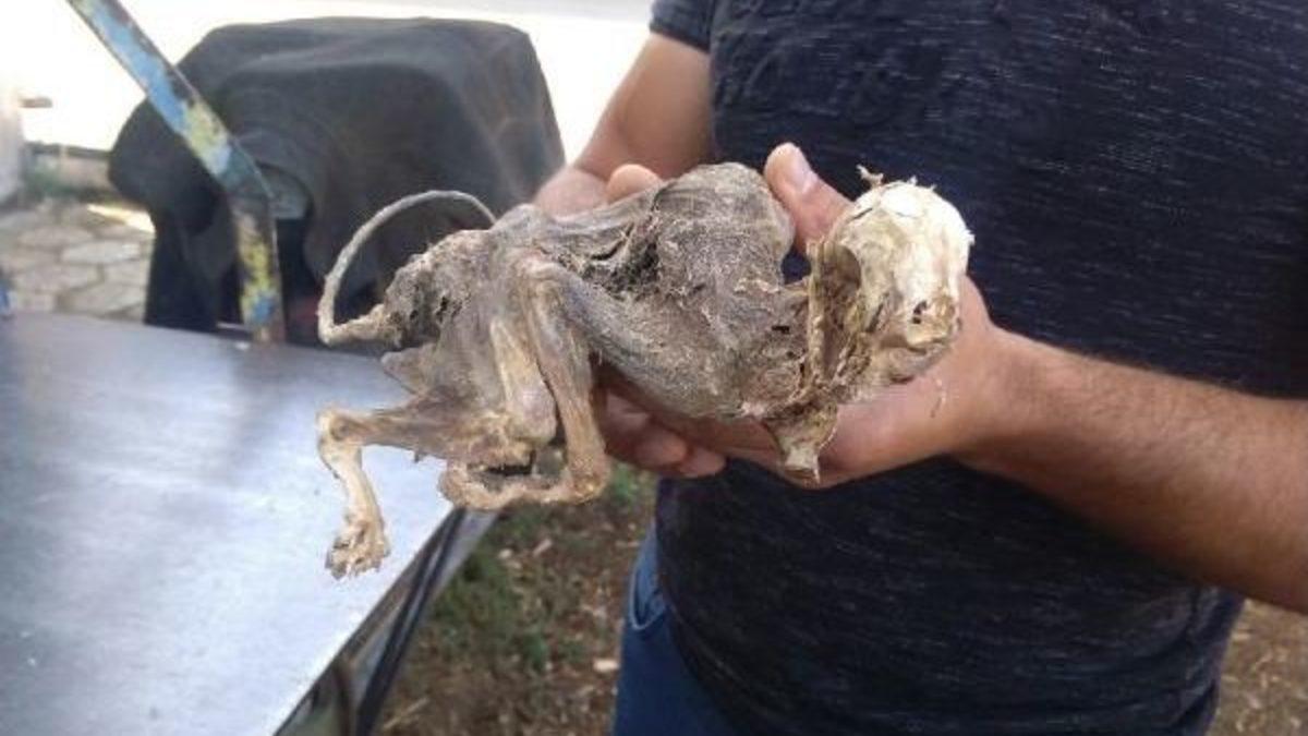 Yıldızeli'de yaşayan 37 yaşındaki Kaya Kılıç, üç gün önce odun satışı yapan babası 67 yaşındaki Mehmet Kılıç'a yardım etmek için Kavaklıdere Köyü'ne gitti. Köyde 80 yıldır var olan evin tavanında bulunan ardıç ağacı gövdesini satın alan baba- oğul, sağlamlığı ile bilinen ağaç gövdesini araçla ilçe merkezine getirdi. Ağacı yakacak odun olarak satmak için hızarla parçalara ayıran Kaya Kılıç, bu sırada ağacın gövdesinde bir cisim fark etti. Ağacın parçalanması sonucu ortaya küçük bir hayvan iskeleti çıktı. Kılıç, büyük şaşkınlık yaşadı. Olayı anlatan Kaya Kılıç, "Köye gittiğimizde orada büyük bir ağaç vardı. Büyük olduğundan dolayı kesmem gerekiyordu. Birer metre kestim. Sonra parçaladım. Parçanın içerisinden ne olduğunu çözemediğimiz iskeleti buldum. Görünce ne olduğunu anlamaya çalıştım. Babama da sordum. Başkalarına da sorduk. Kimse bir şey söyleyemedi. Bazı arkadaşlarım ise kimisi 'kır tavşanı' dedi. Kimisi 'sincap' dedi. 'Sansar' diyen oldu. Kediye de benzeten oldu. Ama hiçbirine de uymuyor. Ağacın içerisinde bulunduğundan dolayı hiç hava almamış, çürümemiş. Eğer hava alsaydı çürür ve bu hale gelmezdi" dedi.