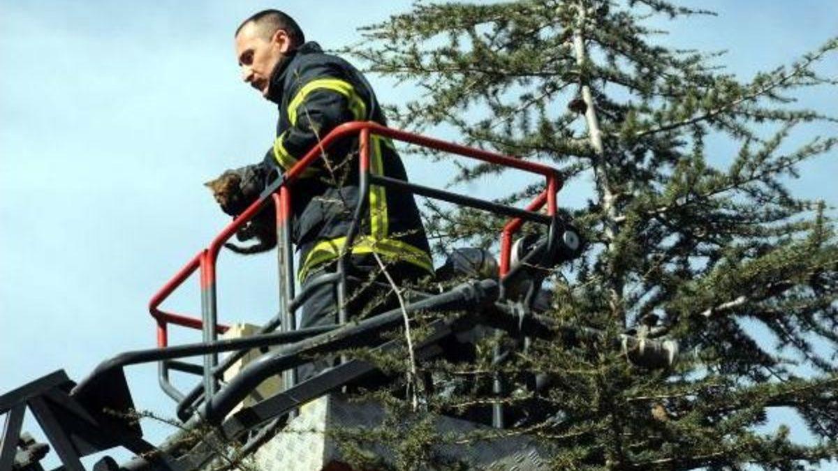 Mustafa TURAPOĞLU/TOKAT, Tokat'ta Valilik binasının yan tarafından bulunan çam ağacının tepesinde 2 yavru kedinin kargaların saldırısına uğradığını gören çevre esnafı, durumu itfaiye ekiplerine bildirdi. Bunun üzerine kedileri kurtarmak için itfaiye sevk edildi. İtfaiye aracının merdiveniyle çam ağacının üst tepesine yükselen görevli, burada mahsur kalan iki kediyi kurtararak, sokağa bıraktı. Valilik binasının otopark kısmına kaçan iki yavru kedinin bir süre sonra yan yana gelip birbirlerini kokladıkları görüldü. Kurtarma operasyonunu izleyen çevredekiler, itfaiye ekiplerine teşekkür etti. İki kedinin ağaçta mahsur kaldığını görerek itfaiye haber veren esnaf İhsan Gürsesli, "Sabah kargaların kedilerle ağaçta mücadele ettiğini gördük. Daha sonra kargalar kaçtı ama kediler mahsur kaldı. Sonra itfaiyeye haber verdik ve iki yavru kedi kurtarıldı" dedi.