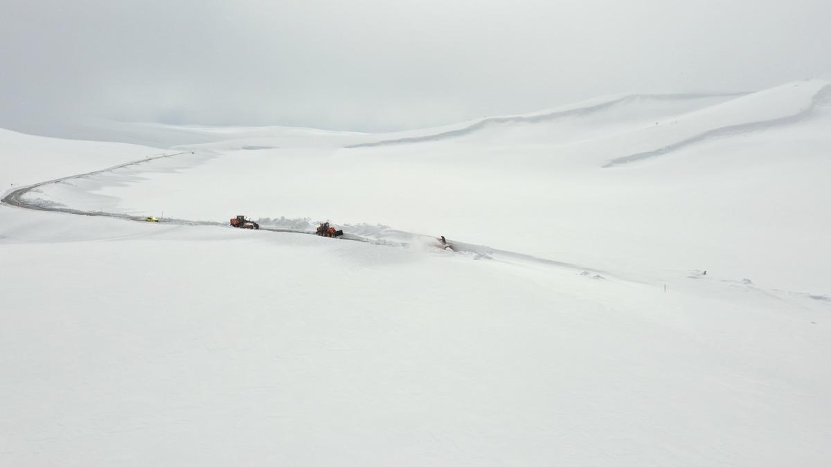 Bölgede 3 iş makinesiyle karla mücadele çalışması yapan ekipler, 2 bin 270 rakımdaki Yukarıkent Geçidi'nde zorlu hava koşullarına rağmen çalışmasını sürdürüyor.