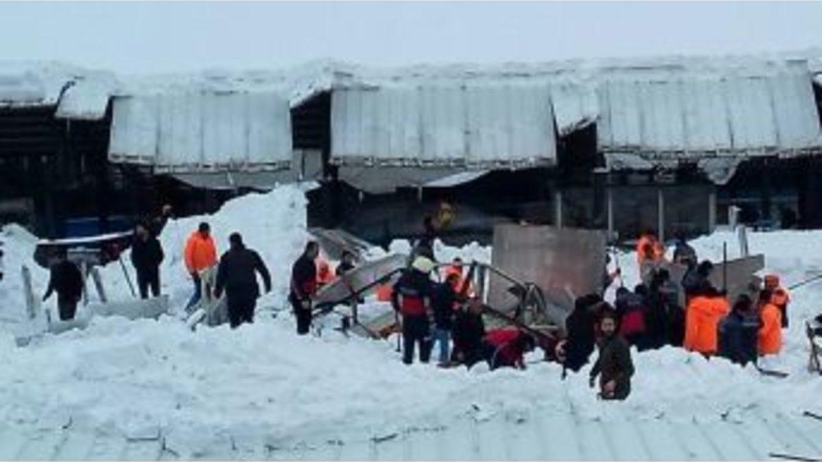 Ağrı’nın Eski Van Caddesi üzerindeki sabit semt pazarı çatısının kardan dolayı çökmesi sonucu altında çok sayıda kişi kaldı. Kurtarma çalışmaları devam ederken, bölgeye çok sayıda ambulans sevk edildi.