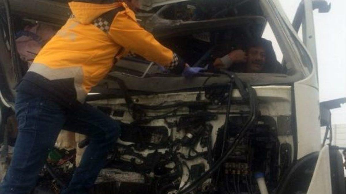 Ağrı’nın Eleşkirt ilçesinde bir tır, yol kenarında duran arkadan tıra çarptı. Kazada 1 kişi yaralandı.Edinilen bilgiye göre, Erzurum–Ağrı karayolunda Ağrı istikametine seyir halinde olan Vedat Aykulteli (58) yönetimindeki 31 AUG 59 plakalı tır, kaygan zemin nedeniyle yol kenarında duran plakası öğrenilemeyen tıra arkadan çarptı. Kazada tır şoförü Vedat Aykulteri aracın içinde sıkıştı. Olay yerine gelen ilçe emniyet, AFAD ve 112 ekipleri tarafından yapılan müdahalelerle yaralı sıkıştığı araçtan çıkarıldı. 112 ekipleri tarafından yapılan ilk müdahalesinin ardından Eleşkirt Devlet hastanesine kaldırılan yaralı burada yapılan müdahalenin ardından da Ağrı Devlet Hastanesine sevk edildi.