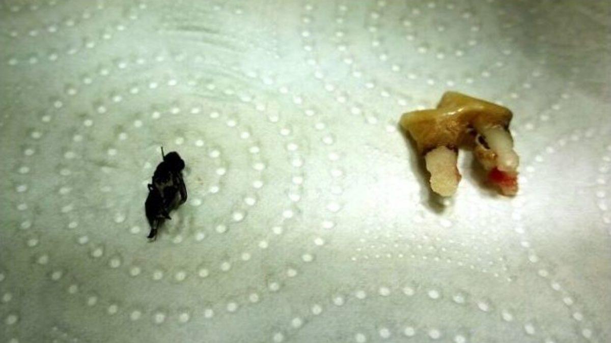 Muğla’nın Marmaris ilçesinde veterinere götürülen köpeğin çektiği ağrının, ağzına yerleşerek azı dişini çürüten bal arısından kaynaklandığı anlaşıldı.Marmaris’te bir veteriner kliniğinde eşine az rastlanan bir olay yaşandı. Datça’da yaşayan Okan Çağlar, 11 yaşındaki Terrier cinsi ’Kızım’ ismini verdiği köpeğini, dişlerinin ağrıması ve ağzından kötü kokular gelmesi üzerine Marmaris’teki Villapet Veteriner Kliniği’ne götürdü. Yapılan muayenede, ağrının azı dişinin arasına yerleşerek enfeksiyon oluşturan bal arısından kaynaklandığı tespit edildi.Veteriner Behçet Düzgün gazetecilere yaptığı açıklamada, 26 yıllık meslek hayatında ilk defa böyle bir olayla karşılaştığını kaydetti. Özellikle ilkbahar aylarında arı sokması şikayetlerinin çok fazla olduğuna işaret eden Düzgün, "Genelde köpekler arıları havada ağızlarıyla yakalamaya çalışırlar ve arı üst damaklarını sokar" dedi.Düzgün, anestezi verip hayvanın ağzına baktıklarında, azı dişlerinden birinin dibinin oyulmuş olduğunu gördüklerini kaydetti. Dişin dibinde siyah bir kütle olduğunu fark ettiklerini ifade eden Düzgün, "Oyuğun içinden iğnesi hala arkasında olan bir bal arısı çıkardık. Arı dilinin altından azı dişinin altına giriyor ve orada yer ederek kalıyor. Apse yaparak dişi çürütmüş. Nasıl olduysa köpeğin ağzını sokmamış" diye konuştu.Fosilleşmiş arının bir kaç hafta köpeğin ağzında kaldığını düşündüklerini dile getiren Düzgün, sallanan dişi çektiklerini ve böylece köpeğin ağrılarının dindiğini vurguladı. Behçet Düzgün, "Köpek dişini kaybetti ama sağlığına kavuşmuş oldu" ifadesini kullandı.