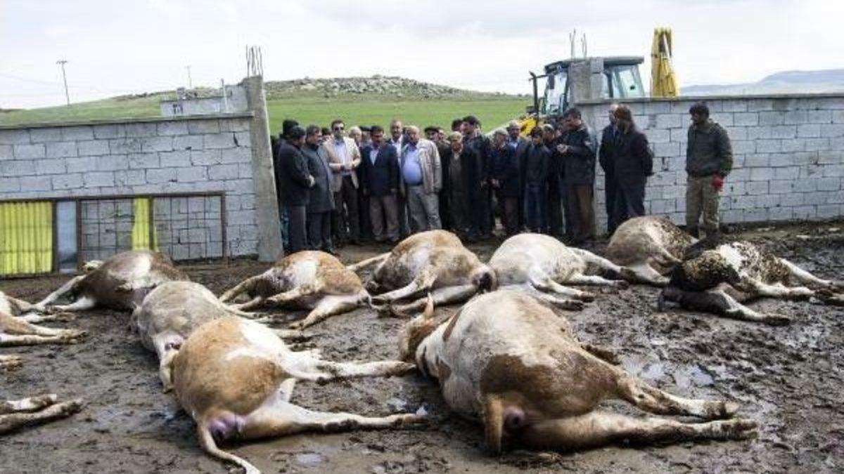 Halil ÜLKER / AHLAT Ahlat'ta süt üreticiliği yapan Baykal Canyiğit akşam saatlerinde ahırdaki büyükbaş hayvanlarına yemlerini verdi. Bir süre sonra hayvanları kontrol etmek ve sularını vermek için ahıra giren Canyiğit hayvanlarının çoğunun yerde cansız yattığını gördü. Canyiğit, bunun üzerine Gıda Tarım ve Hayvancılık İlçe Müdürlüğü ile jandarmaya haber verdi. Olay yerine gelen Gıda Tarım ve Hayvancılık İlçe Müdürlüğü uzmanları hayvanlardan numune alarak incelenmek üzere laboratuvara gönderdi.