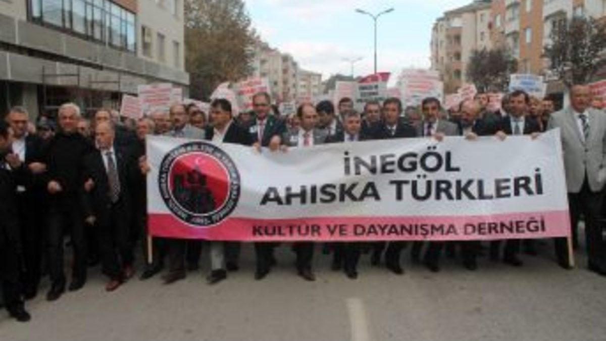 İnegöl Ahıska Türkleri Kültür ve Yardımlaşma Derneği, Ahıska sürgününün 69. yılı dolayısı ile bir anma programı gerçekleştirdi. Sessiz yürüyüş ile başlayan program anıt önünde gerçekleştirilen konuşma ile son buldu.İnegöl Ahıska Türkleri Kültür ve Yardımlaşma Derneği, 14 Kasım 1944 Ahıska Sürgünü dolayısı ile anma programı gerçekleştirdi. İnegöl AVM’den Atatürk Anıtı’na kadar devam eden sessiz yürüyüş ile başlayan program anıt önünde gerçekleştirilen konuşmaların ardından son buldu. Düzenlenen programa CHP Bursa Milletvekili İlhan Demiröz, MHP Bursa Milletvekili Necati Özensoy, MHP İl Başkanı Hasan Toktaş, MHP Bursa Belediye Başkan adayı Kadir Koçdemir, İnegöl’de bulunan tüm siyasi parti ilçe başkanları ve partililer, sivil toplum kuruluşlarının temsilcileri, bazı oda ve dernek başkanları ile çok sayıda Ahıskalı katıldı.Ahıska Türklerinin son 70 yılda üç defa sürgüne uğrayan ve 1944 yılında kanlı diktatör Stalin'in hışmına maruz kalarak sürgüne tabi tutulan masum, sessiz ve yaralı bir ceylan olduğunu belirterek konuşmasına başlayan İnegöl Ahıska Türkleri Kültür ve Yardımlaşma Derneği Başkanı Mehmet Taş, “1944 sürgünü Ahıska Türklerinin yaşadığı ilk yıpranış, ilk savruluş değil. Çağlar boyu tarih onların destansı kahramanlıklarını yazıyor. Osmanlı döneminde eyalet başkenti olan Türk yurdu Ahıska, 1828 Osmanlı-Rus harbinde çoluk-çocuk, genç-yaşlı, kadın-erkek omuz omuza kendi imkânlarıyla Ruslara karşı kahramanca savaşır. Ancak ne yazık ki 1829 Edirne Antlaşması gereği Ahıska bölgesi Ruslarca savaş tazminatı olarak alınır. Yıllar boyu Rus hükümetinin elinde acımasızca yönetilen bu halk, İkinci Dünya Savaşı'nda da 40 bin evladını SSCB ordusuna vermek zorunda kalır” dedi. Ahıskalı erkekler daha savaştayken, kalan yaşlıların ve kadınların Ahıska-Borcom demiryolu inşasında çalıştırıldığını aktaran Mehmet Taş, “Ne hazindir ki kendi elleriyle döşedikleri demiryolunda, gelen ilk trenlerle hem de hayvan vagonlarıyla bu halk bir sürgüne, bir ölüm yolculuğuna sürüklenir. Savaş sonunda çoğu sakat olarak dönen askerler için geride artık ne evleri, ne yurtları ne de aileleri vardır. 15 Kasım 1944 sabahı Ahıska tarihinde kırılma noktasıdır. Yol zorludur, yol soğuktur, bilinmeze doğru bir göç başlamıştır. Geri döneceklerini zannederek yola çıkan 120 binden fazla Ahıskalı artık vatansız, topraksız, kimsesizdir. İçlerinden okuryazar ve aydınlar alınıp Sibirya'ya gönderilir. Kendilerinden bir daha haber alınamaz. Bir halkı yok etme planının süreci tıkır tıkır işlemektedir. Açlığın, soğuğun ortasında, Kafkasya'nın acımasız tabiat şartlarında birçok insan bu ölüm yolculuğuna daha fazla direnemez, hayatını kaybeder. Kızıl Ordu askerleri şehit olan bu insanların gömülmesine, namazlarının kılınmasına dahi izin vermez. Onları kolundan, bacağından tutarak Kafkasya'nın uçsuz bucaksız karlı dağlarına fırlatırlar. Şehitlerimizi kurtlara, kuşlara yem olarak bırakırlar. Bu sürgün bir ay boyunca böyle sürüp gider. Bu nedenle çoğu insan ölülerini koynunda, kucağında saklayarak varacakları yere kadar götürmeye çalışırlar” şeklinde konuştu.Türkiye Cumhuriyeti tarafından 2 Temmuz 1992 tarih ve 3835 numara ile çıkarılan ‘Ahıska Türklerinin Kabul ve İskânına Dair Kanun’ gereğince, 160 ailenin Iğdır'a yerleştirildiğini fakat devamının gelmediğini aktaran Mehmet Taş, “Daha sonra kendi imkânlarıyla Türkiye'ye gelen Ahıska Türkleri Bursa, İzmir, Antalya, İstanbul gibi şehirlere yerleşmişlerdir. Herşeylerini yok pahasına satıp uçak parasını toplar toplamaz Türkiye'ye göçen Ahıska Türklerinin durumu ülkemizde de maalesef iyi değil. 3835 sayılı kanunun üzerinden 21 yıl geçmesine rağmen bazı konularda özellikle resmî işlemlerde sıkıntılar maalesef devam etmektedir. Özellikle oturma izni, çalışma izni, diploma denklikleri ve Türk vatandaşlığını alma konusunda düzenlemelerin bir an önce yapılması gerekmektedir. Tüm sorunların çözümü 3835 sayılı kanunun yürürlüğe geçmesiyle çözüleceğine inanıyoruz. Yasayla ülkemize gelenlere vatandaşlık verilmeli. Bulundukları ülkelerde kalan Ahıska Türklerinde çifte vatandaşlık verilerek güvence altına alınmalıdır. Dünya üzerinde zulüm gören, acı çeken, haksızlığa uğrayan tüm insanlara ve ülkelere yardım elini uzatan devletimiz inanıyorum ki kendi dilinden, kendi dininden olan ve vatanını canından aziz bilen Ahıska Türklerine de şefkatli kollarını uzatacaktır. Sorunların çözümü için gerekeni yapacaktır. Herkesin bir hayat hikâyesi vardır, kimi acı, kimi tatlı ama Ahıskalıların dramı çok farklı, üç kelimeyle anlatılır. ‘İşkence, zulüm, sessiz çığlık’. Yüce Rabbimden bir tek isteğim var. Bundan sonra Ahıskalılar artık üzülmesinler, yeni hayatlarını da kendileri üç kelimeyle anlatsınlar; ‘Sağlıklıyız, Huzurluyuz ve Mutluyuz’. Biz Ahıskalıyız, Biz Türk'üz, Biz Müslüman’ız. Bu hasletlerimizle de onur duyuyoruz, gurur duyuyoruz” ifadelerini kullandı.6 yaşında sürgüne uğrayan ve şuanda 75 yaşında olan Vahdettin Şahmuradov yaptığı konuşmasında; “Bizim buraya gelişimize sebep olan yerli hükümete bin bir rahmet ediyorum. Bizi Türkiye’ye kabul eden insanlardan çok memnunuz. Allah’a şükürler olsun ki doğduk doğalı Türkiye hükümeti tanıyoruz, Türkiye Cumhuriyeti bayrağı altında çalışmak istiyoruz. Başka sözümüz yok. 6 yaşındaydım, sınırda yaşıyorduk. O zamanlar kaçıp Türkiye’ye gelmek isterdim. Babam askerde, 4-5 küçük kardeşim var, amcalarım askere savaşa gitti. Bizi o vakitlerde gece yarısında askerlerin yardım