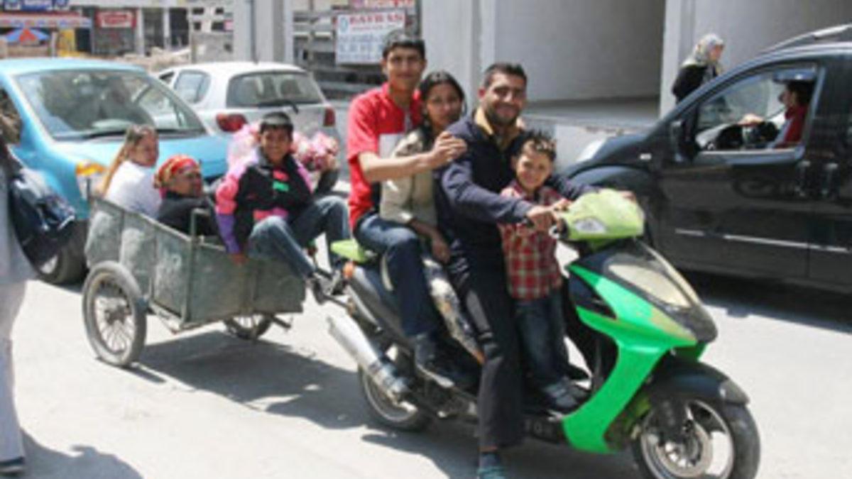 İzmir'in Karşıyaka ilçesinde, iki kişilik motosiklete binen dokuz kişilik aile, can güvenliğini adeta hiçe saydı.