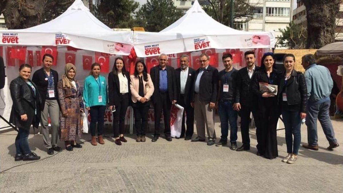 AK Parti Eskişehir İl ve İlçe Kadın Kolları Başkanları, kenttin belirli yerlerine kurulan ‘Evet’ çadırlarını ziyaret etti.AK Parti İl Kadın Kolları Başkanı Özlem Yalçın, Tepebaşı İlçe Kadın Kolları Başkanı Neşe Karademir ve Odunpazarı İlçe Kadın Kolları Başkanı Esma Eserkaya ile birlikte şehrin çeşitli noktalarında bulunan ‘Evet’ çadırlarındaki ekipleri ziyaret etti. İl Kadın Kolları Başkanı Özlem Yalçın, "Şehrimizde ‘Evet’ çadırlarındaki coşku görülmeye değer, halkımızın büyük ilgisi ile karşılaşıyoruz ve olumlu geri dönüşler alıyoruz.16 Nisan’da partilere değil, Türkiye’nin geleceğine oy vereceğiz. Çadırlarımızda görevli her bir arkadaşımıza teşekkür ediyorum, Ak yürüyüşümüz devam ediyor" dedi.
