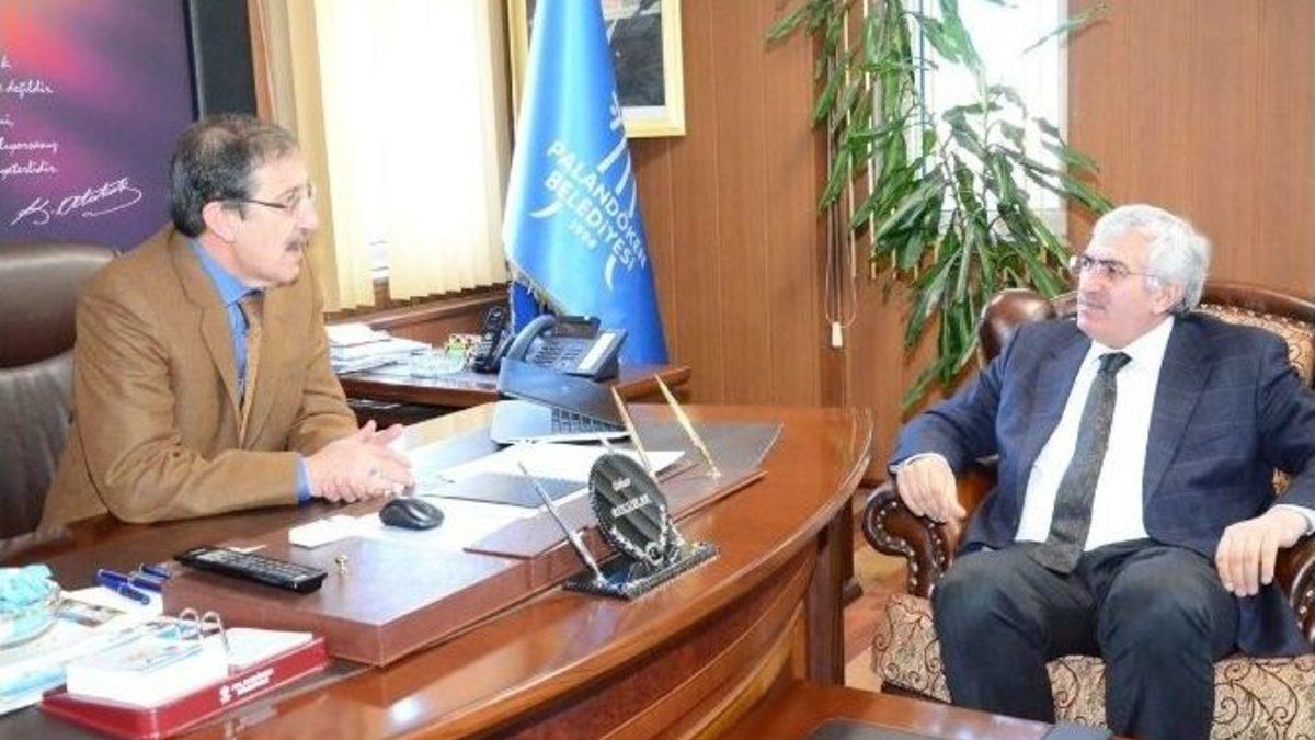 Erzurum AK Parti İl Başkanı Mehmet Emin Öz, yönetim kurulu üyeleriyle birlikte Palandöken Belediye Başkanı Orhan Bulutlar’ı makamında ziyaret ettiler.Palandöken İlçesi için önemli hizmetlere imza attıklarını ve Palandöken’in 8 yıl içerisinde önemli hizmetlerle tanıştığını ifade eden AK Parti İl Başkanı Mehmet Emin Öz ve yönetim kurulu üyeleri Belediye Başkanı Orhan Bulutlar’a Palandöken İlçesine yaptıkları hizmetlerden dolayı teşekkür ettiler.Erzurum AK Parti İl Başkanlığının yeni yönetim kurulu üyeleri de tek tek düşüncelerini dile getirerek, sosyal donatı alanlarının, tesisleşmenin ve modern bir kent olma yolunda ilerlemenin mutluluğunu yaşadıklarını belirterek hizmetler konusunda teşekkür ederek bu hizmetlerin Palandökenin çehresini değiştirdiğini ve ekonomisine katkı sağladığını ifade etti.Nisan ayında yapılacak olan referandum sürecinin başta ülkemiz olmak üzere Erzurum’a ve Palandökene yarar getirmesi temennisinde bulunan AK Parti İl Başkanı Öz," Nisan ayın da yapılacak olan referandumdan başarılı bir şekilde çıkacağımızdan hiç şüphemiz yok. Süreç için plan ve programlarımızı tamamladık. Vatandaşlarımızla gönül köprülerimizi daha da güçlendiriyoruz. Yeni anayasa ve başkanlık sürecinizin yararlı olmasını diliyor, bu süreçte gece gündüz birlikte, tek bir vücut şeklinde çalışmalarımızı yürüteceğiz." şeklinde konuştu.Palandöken Belediye Başkanı Orhan Bulutlar ise," Referandum süreci Palandökene ve milletimize yararlı olur inşallah. Her şey güçlü bir Türkiye içindir. Yolumuz açık bahtımız ak olsun inşallah. Bizler makam için gelmedik. Bizi seçenler hizmetkar olarak geldik. Biz milletimize hizmetkarı olduk. Olmaya da devam edeceğiz. Hiçbir zaman bizlerden desteğini esirgemeyen milletimize teşekkür ediyorum. Bu aziz ve necip millete, evet layık olmak için elimizden gelenin en iyisini yaparak çalışacağız" dedi.Daha sonra Belediye Başkanı Orhan Bulutlar, Ak Parti İl Başkanı Mehmet Emin Öz ve il teşkilat yönetim kurulu üyelerine tamamlanan Yeni Hizmet Binası, Palandöken İlçe Emniyet Müdürlüğü, yapımına başlanan ikinci Kültür Merkezi ile Nikah Sarayı hakkın da detaylı bilgi verdi.