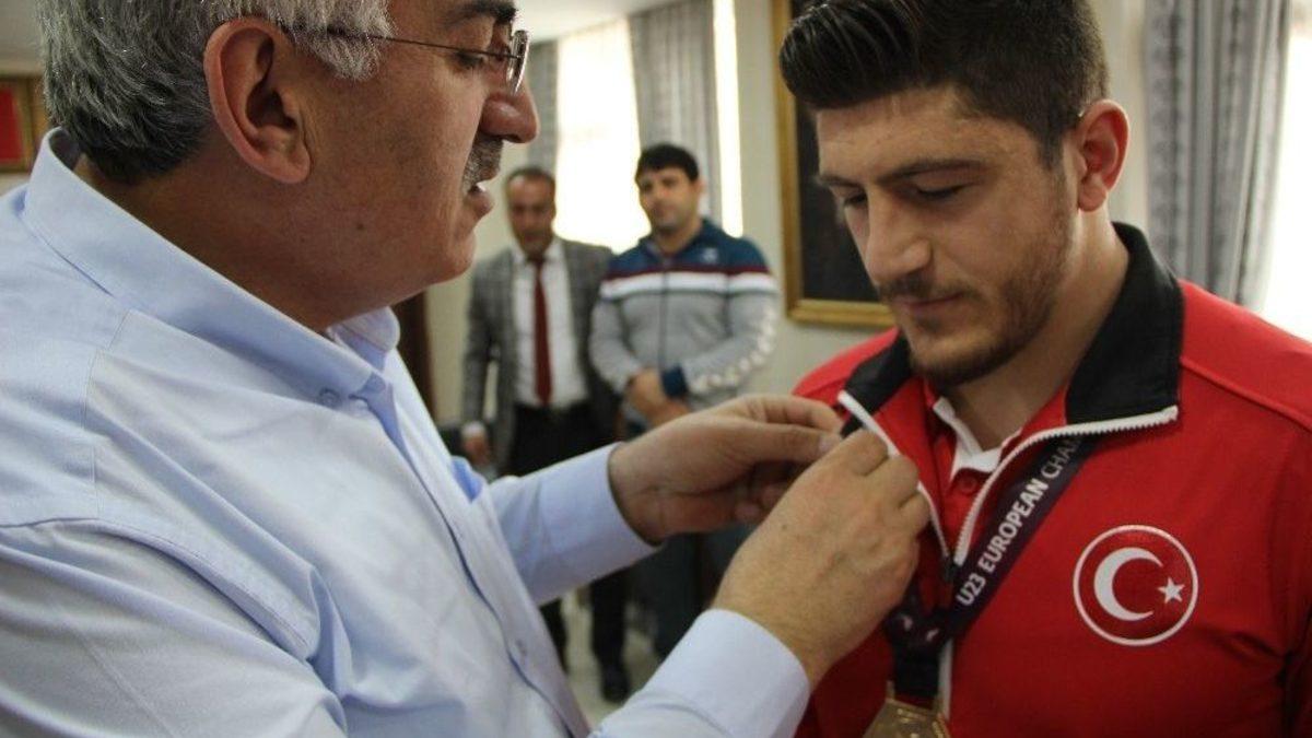 Macaristan’ın Szombathely kentinde düzenlenen U23 Avrupa Güreş Şampiyonası’nda erkekler serbest stilde rakiplerini yenerek altın madalya kazanan Murat Ertürk, Erzurumluların gururu oldu.Adalet ve Kalkınma Partisi İl Başkanlığına giderek Başkan Mehmet Emin Öz’ü ziyaret eden Ertürk’ü Ak Partililer bağırlarına bastılar. AK Parti İl yönetim Kurulu üyesi aynı zamanda Güreş İl Temsilcisi Battal Alpkılıç antrenörler Fikret Polat, Adem Akbulut ve Kenan Gör ile birlikte AK Parti il yönetimine gelen şampiyon güreşçiye Başkan Öz tarafından altın hediye edildi. İl başkanı Öz, Final maçında Macaristanlı güreşçi Toth Bendeguz’u Avrupa rekoru kırarak 55 saniyede tuşla yenen Ertürk’ün elde ettiği bu başarının memleketi Erzurum’da büyük bir sevinçle karşılandığını hatırlattı.Avrupa Şampiyonu Ertürk’ün grubundaki Dünya Şampiyonu olan Rus rakibini de yenerek müsabakalarda herkesi kendisine hayran bıraktığını söyleyen Öz, "Murat kardeşimizin uluslararası başarısı Erzurumluların gurur kaynağı olmuştur. Güreş sporunda Erzurum’un yıllarca büyük başarılar elde ettiğini söylemek istiyorum. Battal beyin il temsilcisi olması hasebiyle de bu spordaki başarılarımızın devam edeceğine inanıyoruz" şeklinde konuştu.