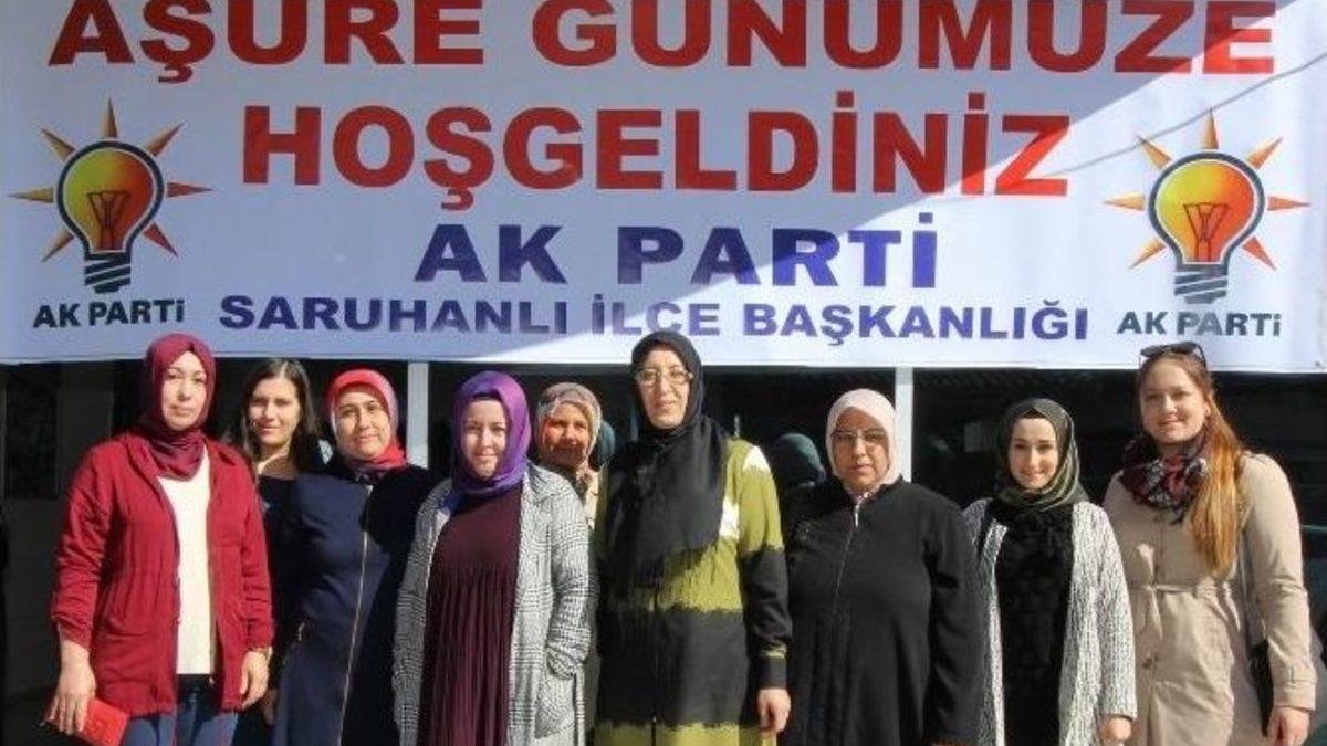 AK Parti Saruhanlı İlçe Başkanlığı, Muharrem ayı dolayısıyla aşure hayrı düzenledi.Saruhanlı pazar yerinin girişinde düzenlenen etkinliğe Belediye Başkanı Dr. Hüseyin Yaralı, AK Parti İlçe Başkanı Ahmet Gökmen ve teşkilat mensupları katıldı. Etkinlikte kazanlarda pişirilen aşure davetlilere ve yoldan geçen vatandaşlara dağıtıldı. Başkan Yaralı ile Başkan Gökmen de aşure kazanının başına geçerek vatandaşlara aşure dağıttı.