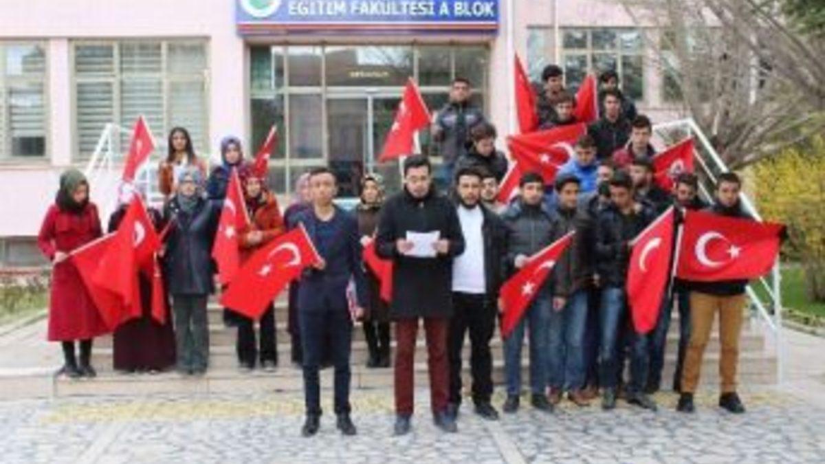 Kırşehir AK Parti üniversite birimi Eğitim Fakültesi önünde İstiklal Marşı okuyarak terörü protesto etti.AK Parti Üniversite birimi başkanı Kadir Murat Biber Eğitim Fakültesi önünde yaptığı açıklamada, tahrik dolu hainlere prim vermeyeceklerini söyledi.TERÖR FAALİYETLERİNİ GERÇEKLEŞTİRENLER FARKLI OLSADA HEDEFLERİ AYNITerör faaliyetleri içerisinde olanların hedeflerinin aynı olduğunu anlatan Biber, “Hedef bölgesinde huzuru demokratik kültürü kardeşlik ve birlik iklimi ile öne çıkan Türkiye’nin yolunu kesmek güçlü ve büyük Türkiye yolculuğunu sona erdirmek istemekteler.” dedi.Ellerinde Türk Bayrakları ile Fakülte önünde açıklama yapan üniversite gençlik birimi adına açıklamada bulunan üniversite Başkanı Kadir Murat Biber, “Türkiye’de huzur sükun ve kardeşlik ikliminin hakim olmasından rahatsız olan odaklarca Ankara Kızılay’da gerçekleştirilen ve onlarca insanımızın ölümüyle sonuçlanan terör saldırısını kınıyoruz.” diye konuştu.TAHRİK DOLU HAİNLİKLERE PRİM VERMEYECEĞİZBirlik ve beraberlik ruhu için dayanışmayı arttırarak tahriklere prim vermeyeceklerini anlatan Biber, şöyle konuştu:“Tüm arzularınızı kursaklarınızda bırakacağız. İç ve dış mihraklarla ülkemizin huzuru ve refahı koruyarak birlik ve beraberliğimizi de sağlayacağız. Terör ve provakasyonlardan faydalanmaya çalışan mankurtlara vatanını ve milletini seven üniversite gençliği olarak fırsat vermeyeceğiz.”Üniversite öğrencileri İstiklal Marşını okuduktan sonra olaysız şekilde dağıldı. Polis ise üniversite bahçesinde geniş güvenlik önlemleri aldı.