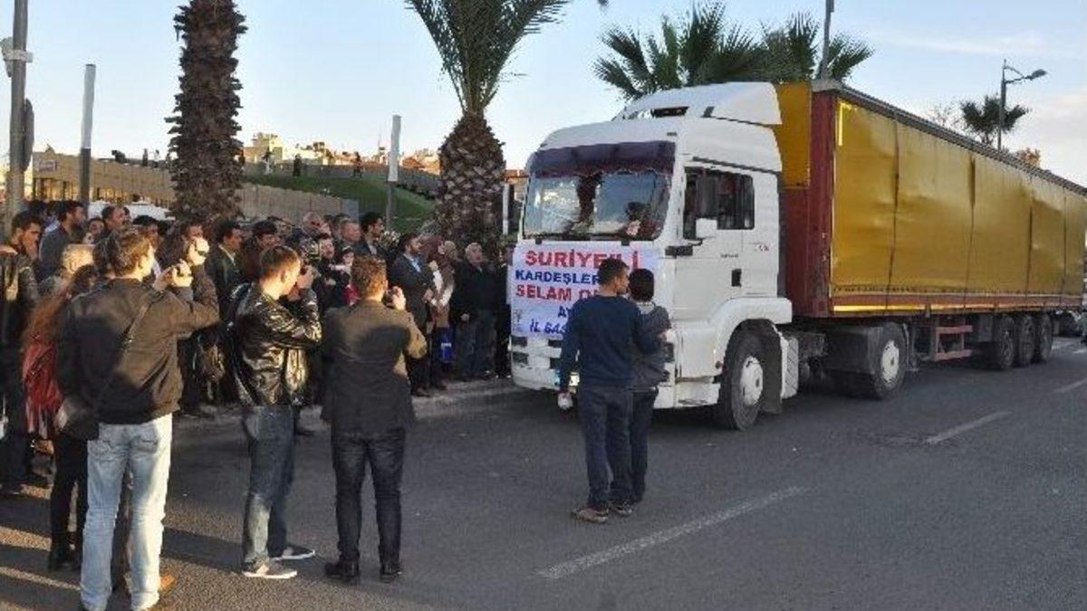 AK Parti Aydın İl Teşkilatı öncülüğünde gönüllülerin ve yardımseverlerin destekleriyle hazırlanan yardım TIR’ı dualar eşliğinde Kilis’e gönderildi.Suriye’de devam eden iç savaş nedeniyle Türkiye’ye sığınan Suriyeliler için AK Parti Aydın İl Teşkilatı ve gönüllülerin destekleriyle toplanan yardım TIR’ı, AK Parti İl Başkanı Ömer Özmen, AK Parti Efeler İlçe Başkanı Aytaç Arslan ve çok sayıda partili tarafından yolcu edildi. AK Parti Kilis Sosyal İşler Başkanlığı ile AK Parti Aydın Sosyal İşleri Başkanlığı’nın işbirliği sonucu Aydın’dan toplanan giyecek ve gıdalar kamplarda kalan Suriyelilere dualarla uğurlandı.Efeler ilçesi Atatürk Kent Meydanından yola çıkan ve yardımları taşıyan TIR’ı dolduran partili ve yardımseverlere teşekkür eden AK Parti İl Başkanı Ömer Özmen, “Bu TIR’ımızda kıyafet ve bir miktar gıda malzemesi var. Yardımlarımızı inşallah Kilis’teki kamplarda toplanan Suriyeli kardeşlerimize gönderiyoruz. Bizler sadece öncülük yapıyoruz. Biz her zaman veren el alan elden üstündür prensibiyle hareket ediyoruz. Rabbim hep bize vermeyi nasip etsin. Allah bu milleti almaya, o zillete düşürmesin. Aydın halkının büyük bir desteğini biz gördük. Kardeşlik bugünlerde belli oluyor. AK Parti teşkilatının da üzerine düşen kardeşliği yerine getirdiğine inanıyoruz. Herkesten Allah razı olsun” diye konuştu.
