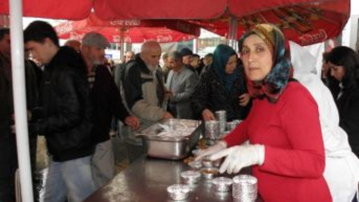 Aşure dağıtımına büyük ilgi gösteren vatandaşlar, afiyetle kendilerine ikram edilen aşureleri yediler.