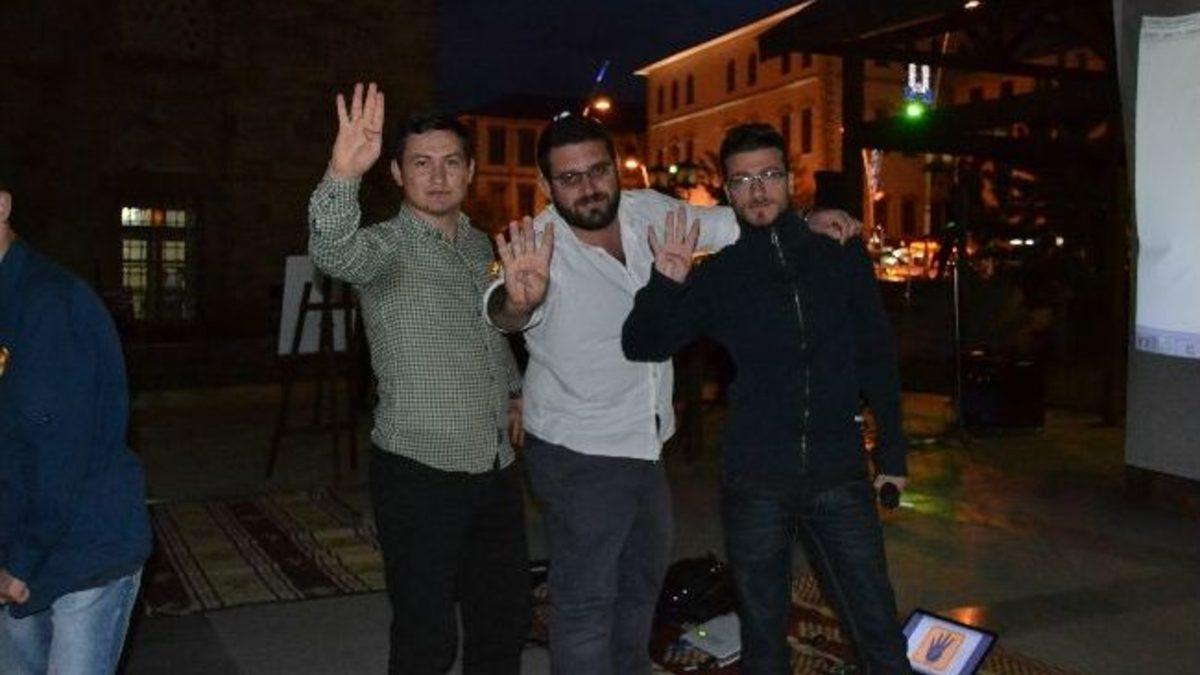 Erzurum AK Parti Gençlik Kolları üyeleri, düzenledikleri Mısır için oturma eyleminde 'R4BİA' işareti yaparak Mısır'a...