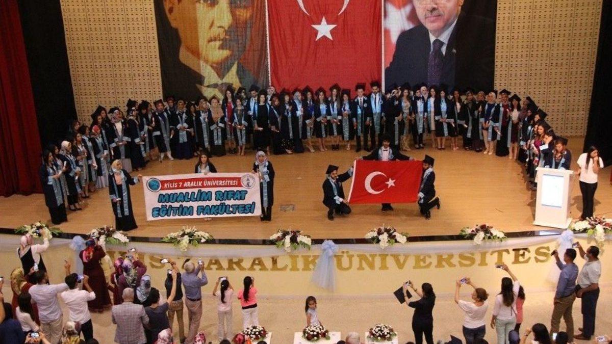 Kilis 7 Aralık Üniversitesinde 2016-2017 Akademik yılı mezuniyet töreni coşkuyla kutlandı.Genel mezuniyet töreninin ardından üniversitenin akademik birimlerinde de farklı törenler yapıldı. Fen Edebiyat Fakültesi, Muallim Rıfat Eğitim Fakültesi, İktisadi ve İdari Bilimler Fakültesi, Mühendislik Mimarlık Fakültesi, İlahiyat Fakültesi ile Yusuf Şerefoğlu Sağlık Yüksekokulu, Sağlık Hizmetleri Meslek Yüksekokulu ve Meslek Yüksekokulu mezuniyet törenleri bu hafta içerisinde gerçekleştirildi.Üniversiteyi başarıyla tamamlayan öğrencilerin coşku ve heyecanla katıldıkları törenlere, veliler de katılımlarıyla destek verdi.